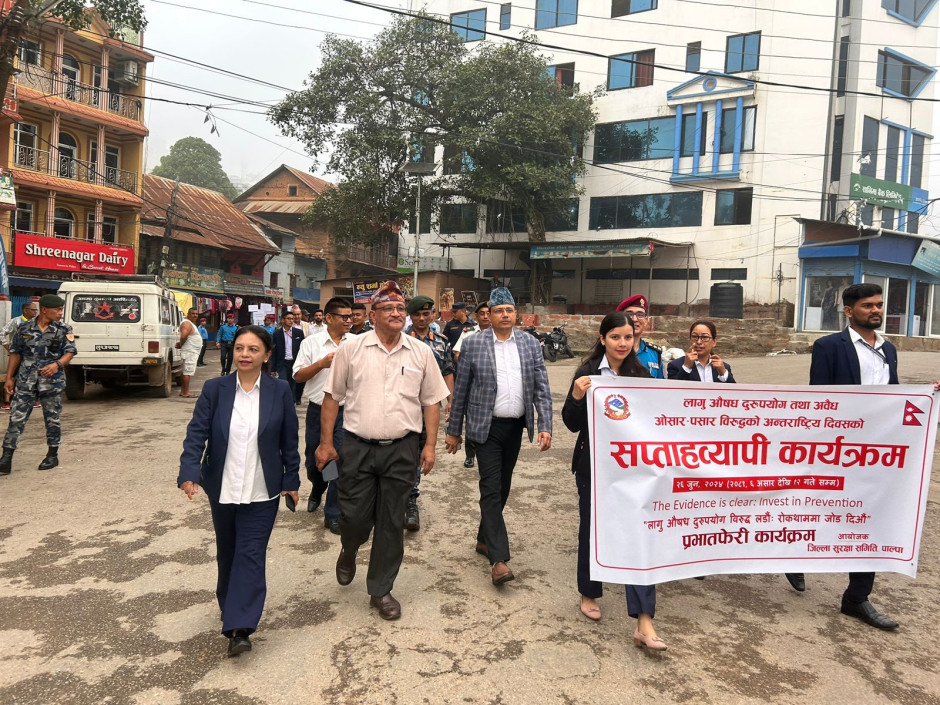 लागु औषध ओसार पसार तथा दुर्व्यसन विरुद्धको अन्तराष्ट्रिय दिवस २६ जुन, २०२४ को अवसरमा प्रभातफेरी कार्यक्रम - २०८१।३।१२