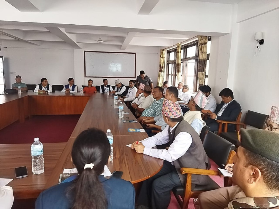 मिति २०८०/०४/३१ गते जिल्ला विपद् व्यवस्थापन समितिका अध्यक्ष एवं प्रमुख जिल्ला अधिकारीको अध्यक्षतामा बसेको बैठकका तस्विरहरु