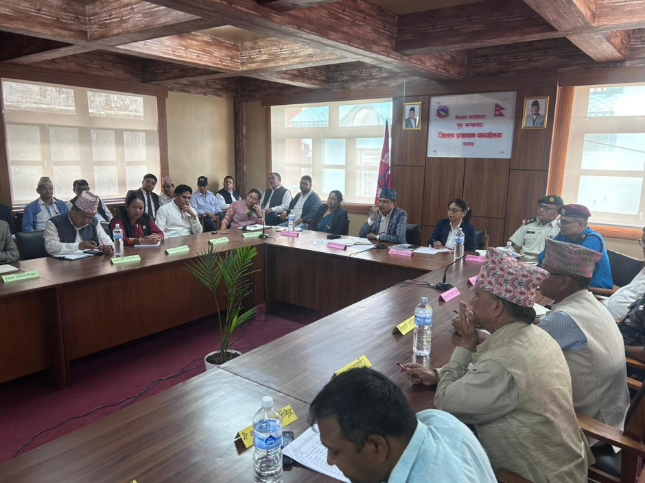 मिति २०८१।२।७ गते प्रमुख जिल्ला अधिकारीको अध्यक्षतामा बसेको जिल्ला विपद व्यवस्थापन समितिको बैठकमा लिएको तस्विरहरु