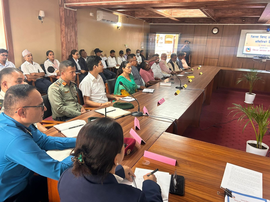 मिति २०८१।४।१५ गते प्रमुख जिल्ला अधिकारीको अध्यक्षतामा बसेको जिल्ला विपद् व्यवस्थापन समितिको बैठकको तस्विरहरु