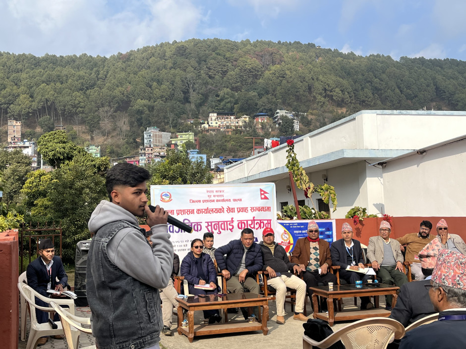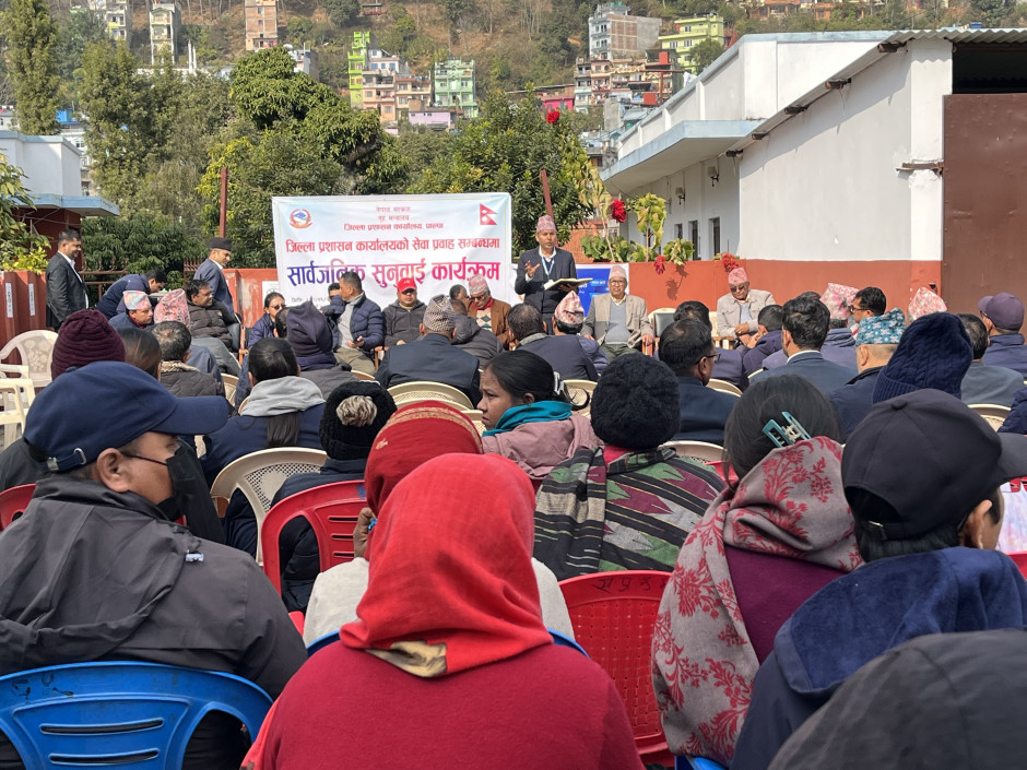 मिति २०८१ पुष २३ गते कार्यालयको सेवा प्रवाह सम्बन्धमा सार्वजनिक सुनुवाई कार्यक्रम प्राङ्गणमा भएको कार्यक्रमको तस्विरहरु