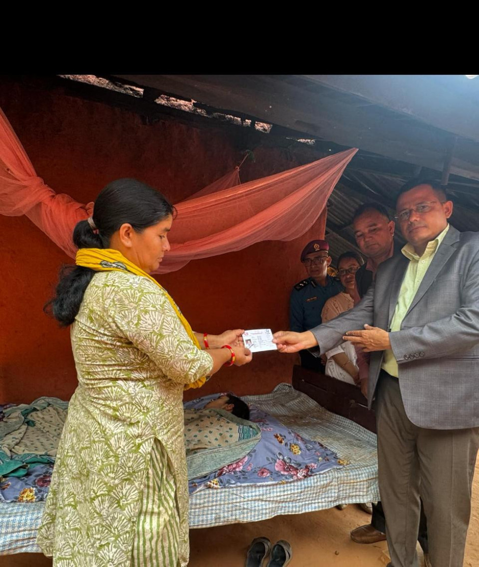तानसेन नगरपालिका वडा नं. ११ निवासी पूर्ण रुपमा अशक्त २३ बर्षका प्रतिक रानाभाटलाई प्रमुख जिल्ला अधिकारी निजकै घरमा पुगि नागरिकता प्रदान गरिएको ।