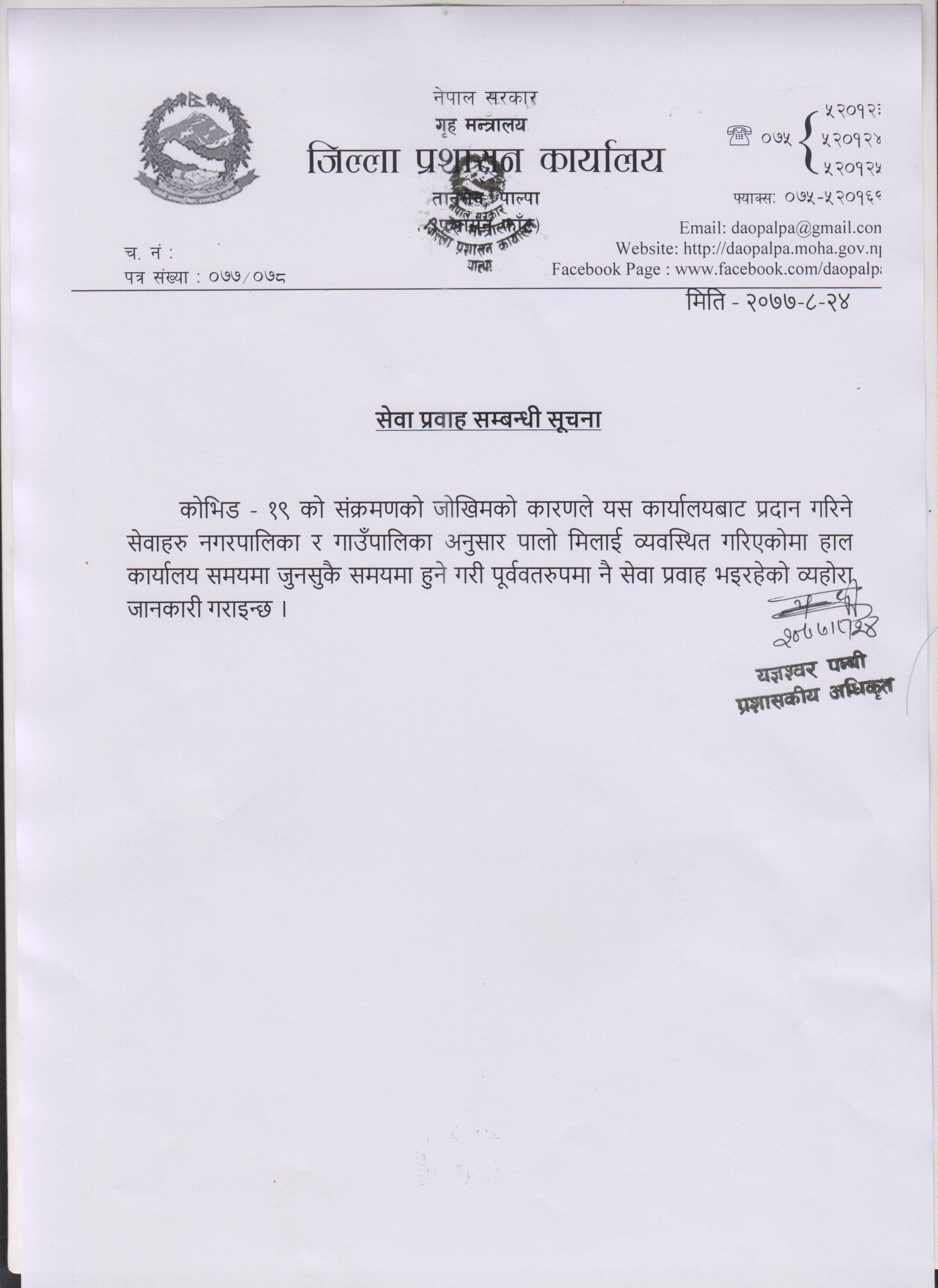 जिल्ला प्रशासन कार्यालय पाल्पाकाे सूचना ।
