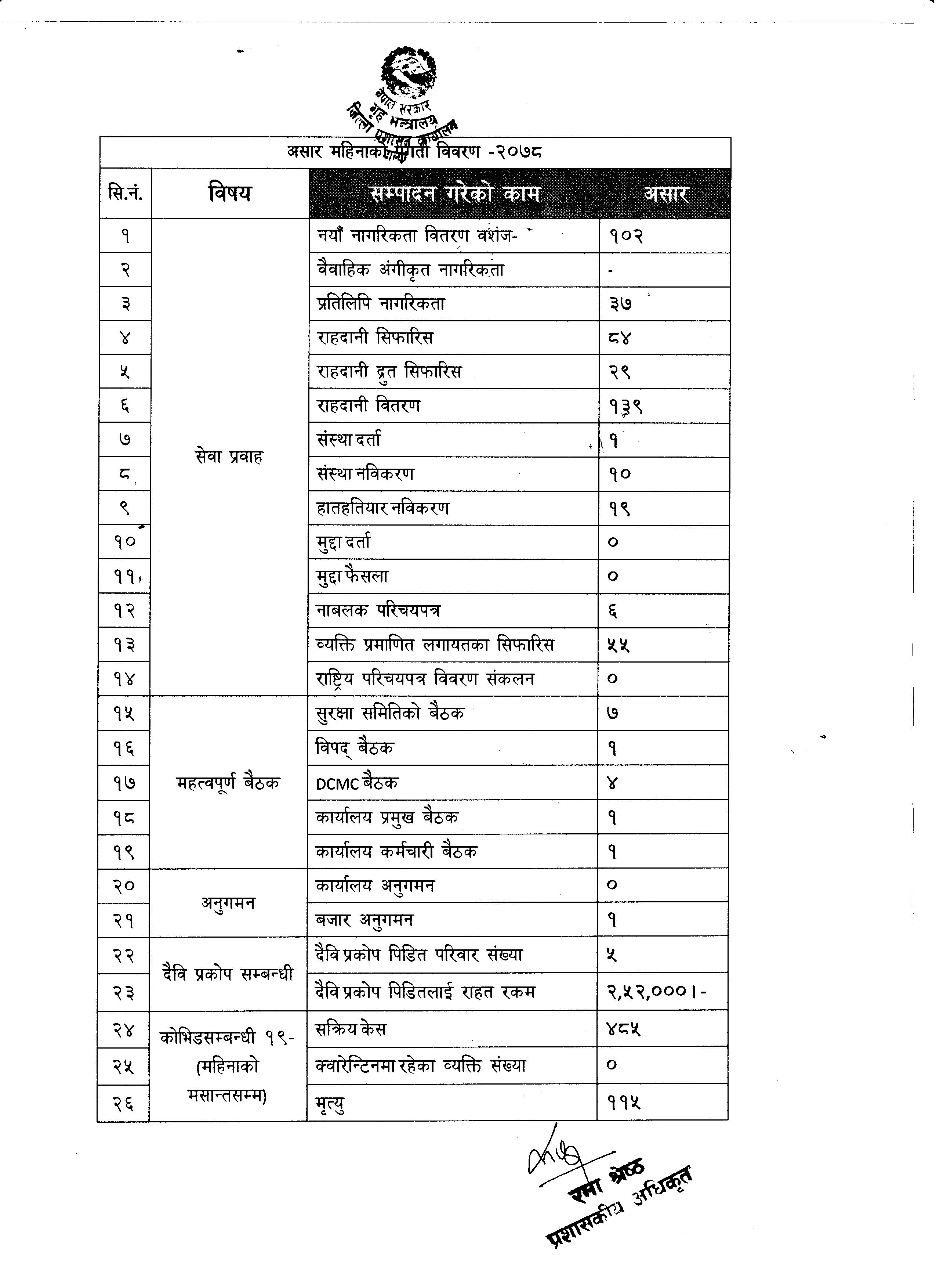 २०७८ असार महिनाकाे प्रगती विवरण ।