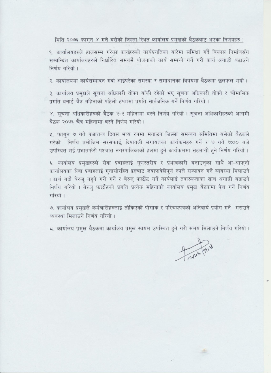 कार्यालय प्रमुख बैठकको निर्णय