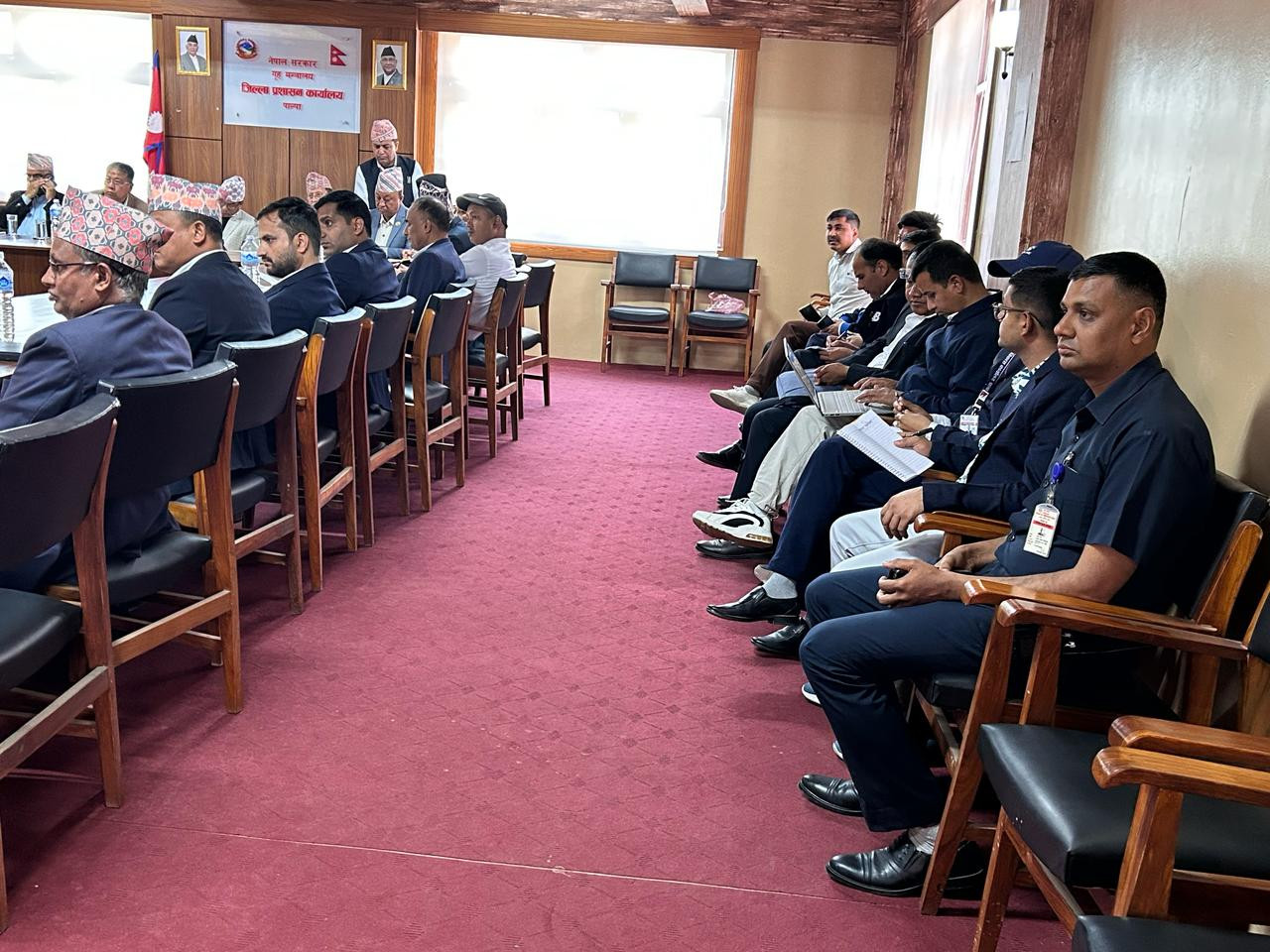 २०८१ चैत्र १० गते प्रमुख जिल्ला अधिकारीको अध्यक्षता, लुम्बिनी प्रदेशका सभामुखको प्रमुख आतिथ्यतामा भएको कार्यालय प्रमुखहरुको बैठकको क्रममा लिइएको तस्विरहरु