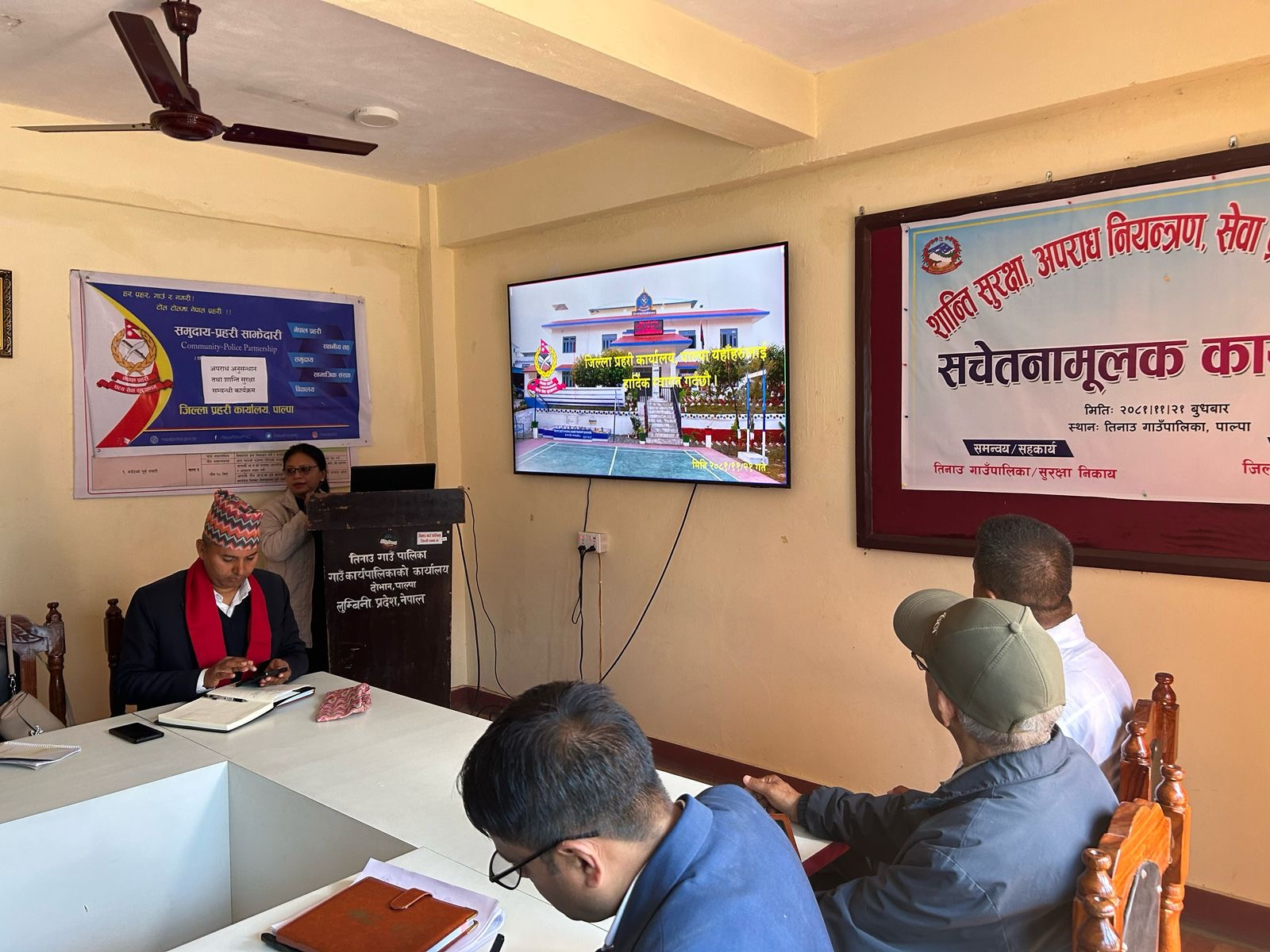 २०८१ फागुन २१ गते तिनाउ गाउँपालिकामा भएको शान्ति सुरक्षा अपराध नियन्त्रण सेवा प्रवाह सम्बन्धी सचेतनामूलक कार्यक्रम