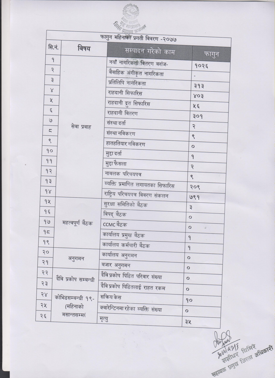 २०८२ साल फागुन महिनाको मासिक प्रगति विवरण