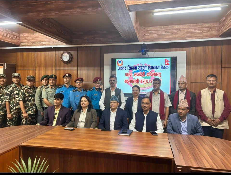 २०८१।३।३ गते पाल्पा,रुपन्देही,कपिलवस्तु,नवलपरासी (ब.सु.प) र गुल्मी जिल्ला बीचभएको अन्तर जिल्ला सुरक्षा समन्वय बैठक