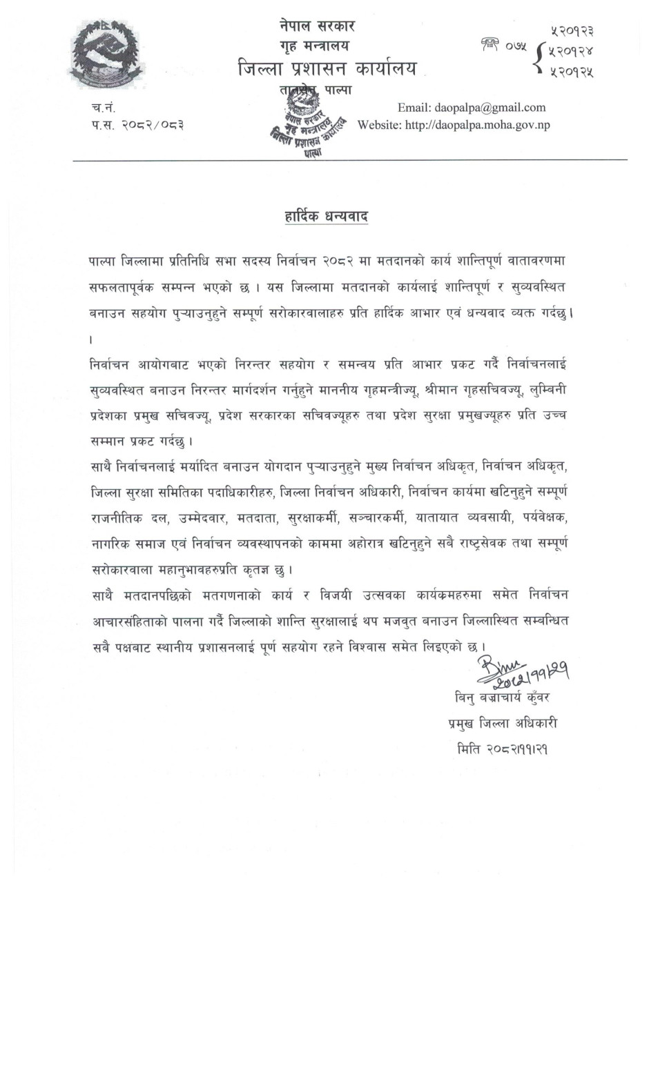 © सर्वाधिकार सुरक्षित जिल्ला प्रशासन कार्यालय, पाल्पा