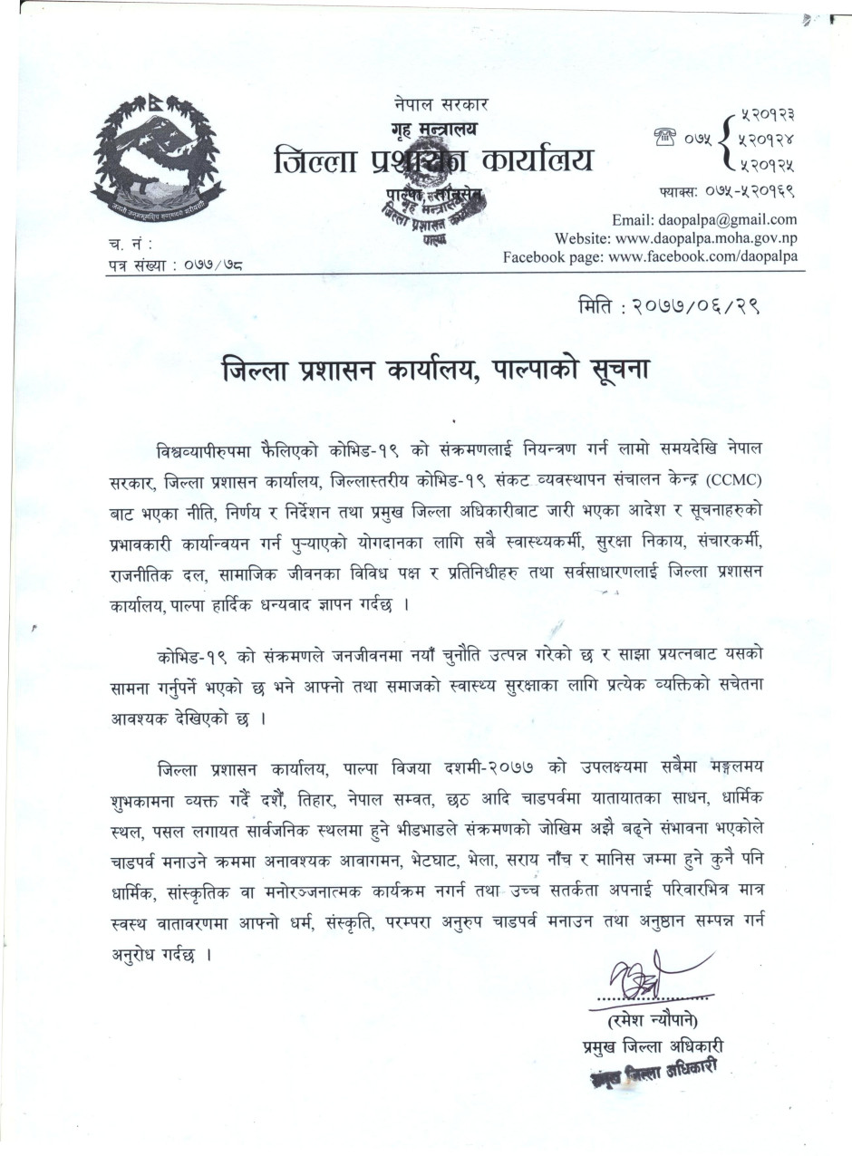 जिल्ला प्रशासन कार्यालय, पाल्पाको सूचना
