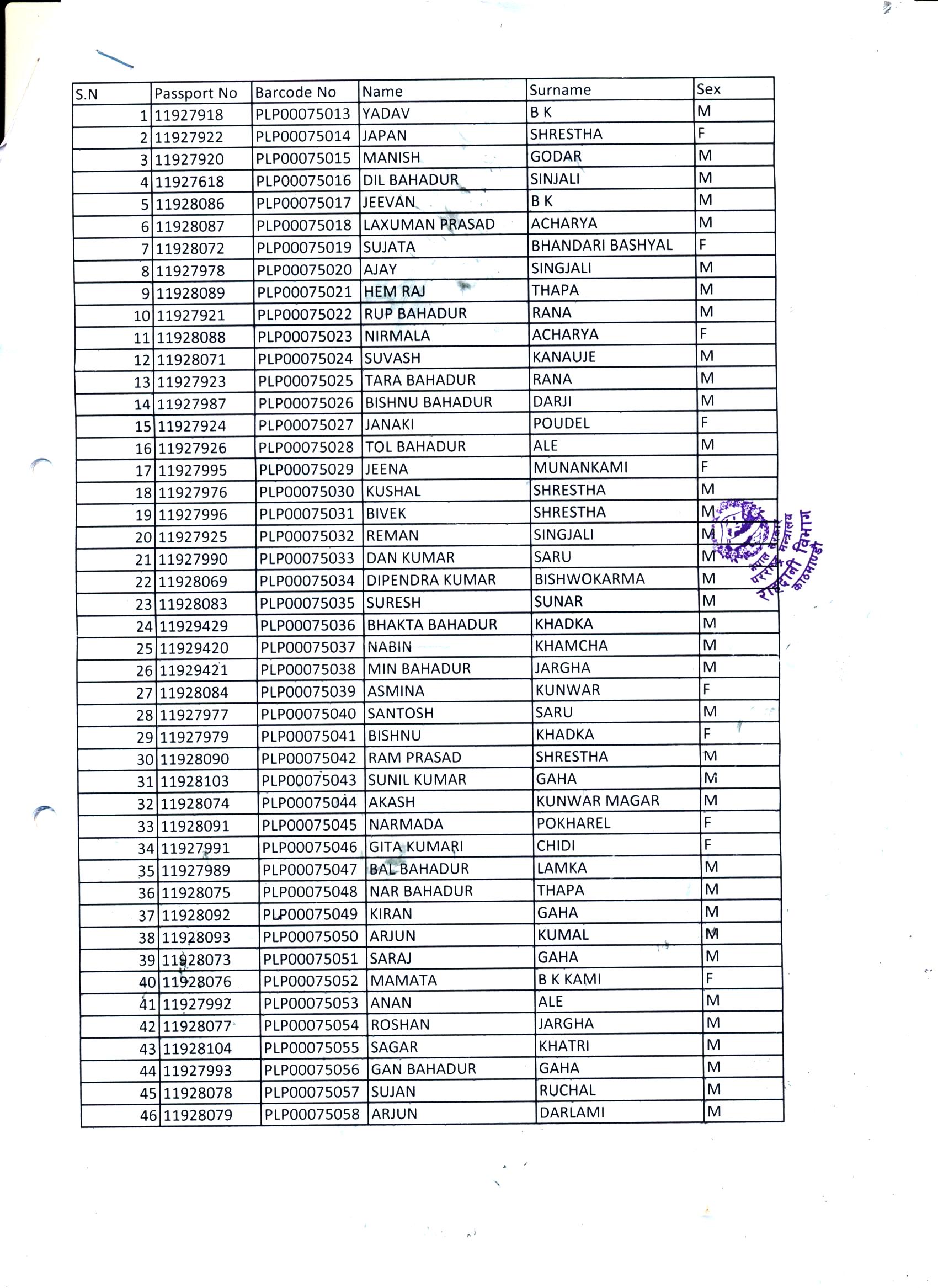 जिल्ला प्रशासन कार्यालय पाल्पामा मिति २०७६/१२/०२ देखी २०७७/०३/२३ सम्म राहदानीकाे लागी प्राप्त आवेदनहरु मध्ये तयार भई आएका राहदानीहरुकाे विवरण निम्न अनुसार रहेकाे छ । राहदानी लिन आउँदा सक्कल नागरिकताकाे प्रमाणपत्र र रसिद लिई बिहानको १०:०० बजे देखी दिउँसोकाे ५:०० बजेभित्र सम्बन्धित व्यक्ति स्वयं उपस्थित भइ राहदानी लिनुहुन अनुरोध छ ।