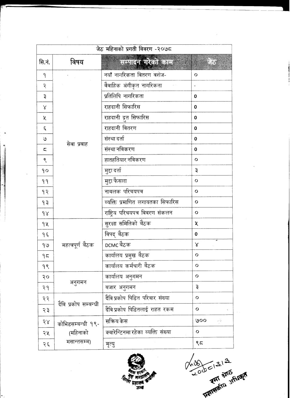 २०७८ जेठ महिनाकाे प्रगती विवरण ।