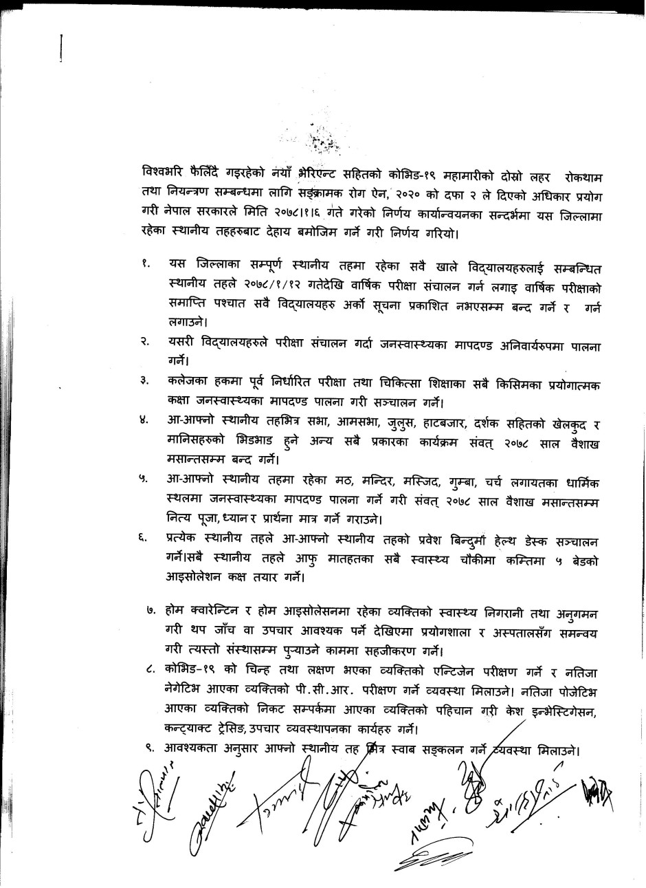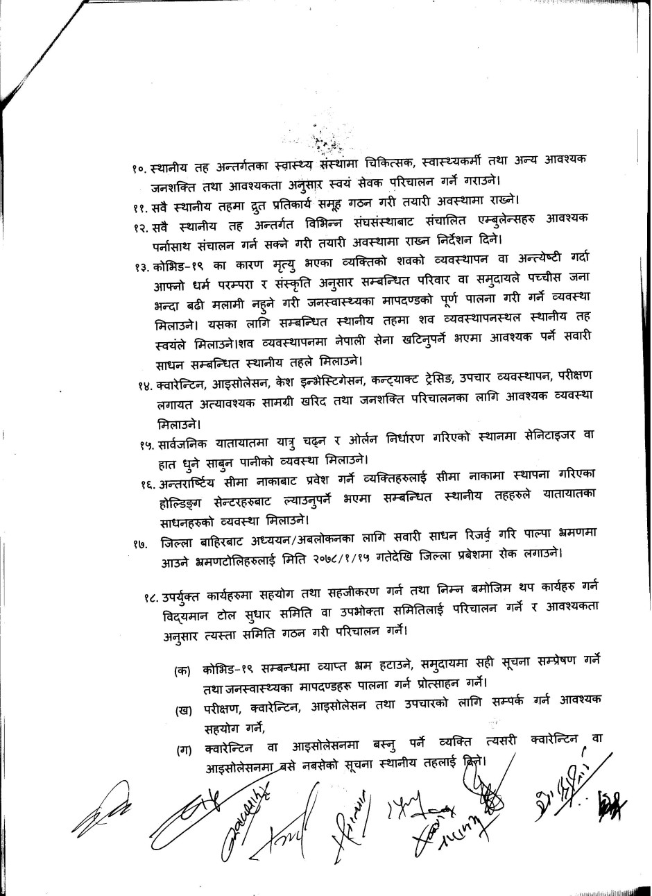 कोभिड - १९ नियन्त्रण सम्बन्धमा स्थानीय तह सँगको समन्वय बैठकका निर्णयहरु ।