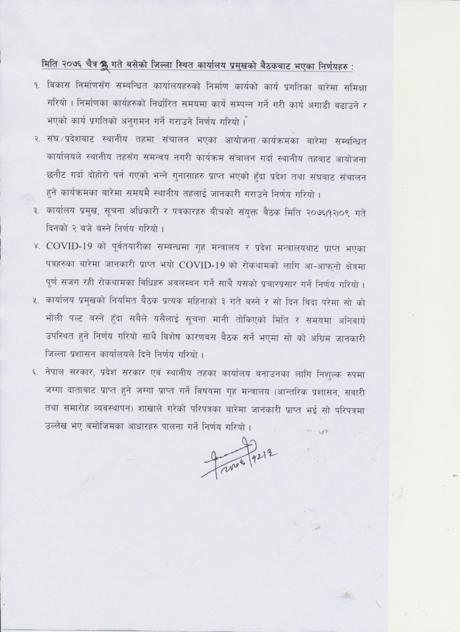 कार्यालय प्रमुख बैठकबाट भएका निर्णय (२०७६/१२/०३)