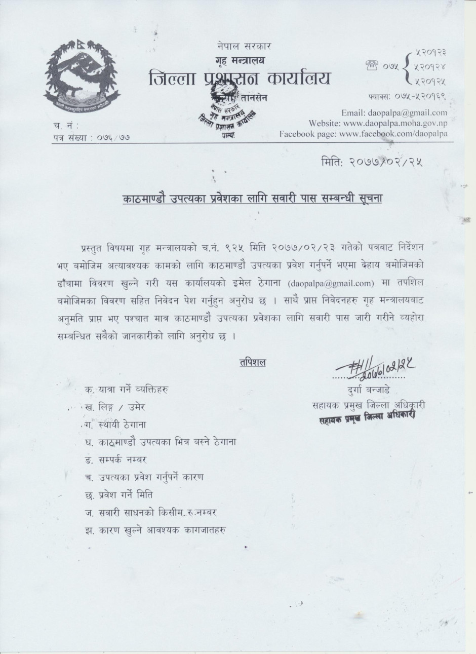 जिल्ला प्रशासन कार्यालय पाल्पाको अनुरोध ।