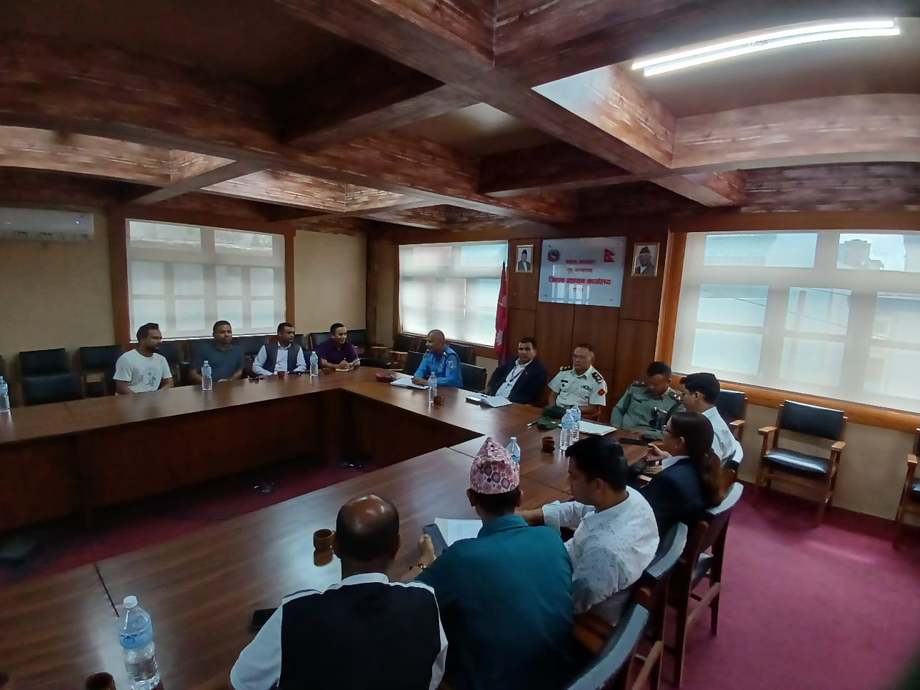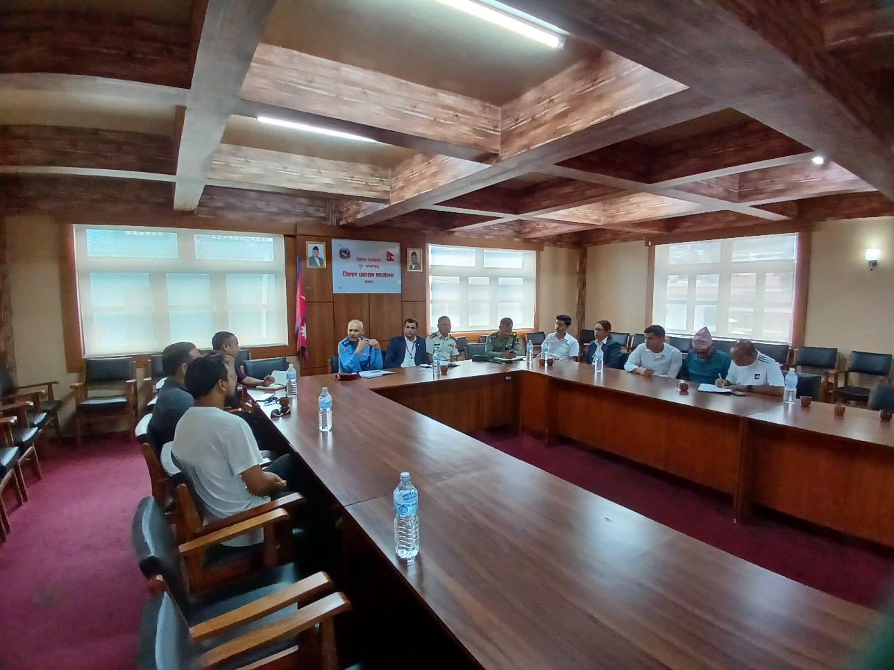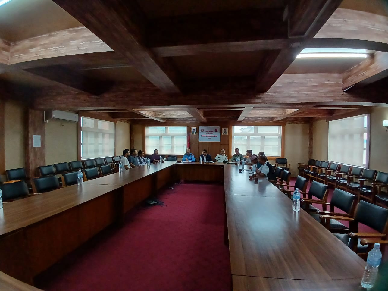 मिति २०८२ जेष्ठ २० गते जिल्ला विपद् व्यवस्थापन समितिका अध्यक्ष एवं प्रमुख जिल्ला अधिकारीको अध्यक्षतामा बसेको बैठकको क्रममा लिइएको तस्विरहरु