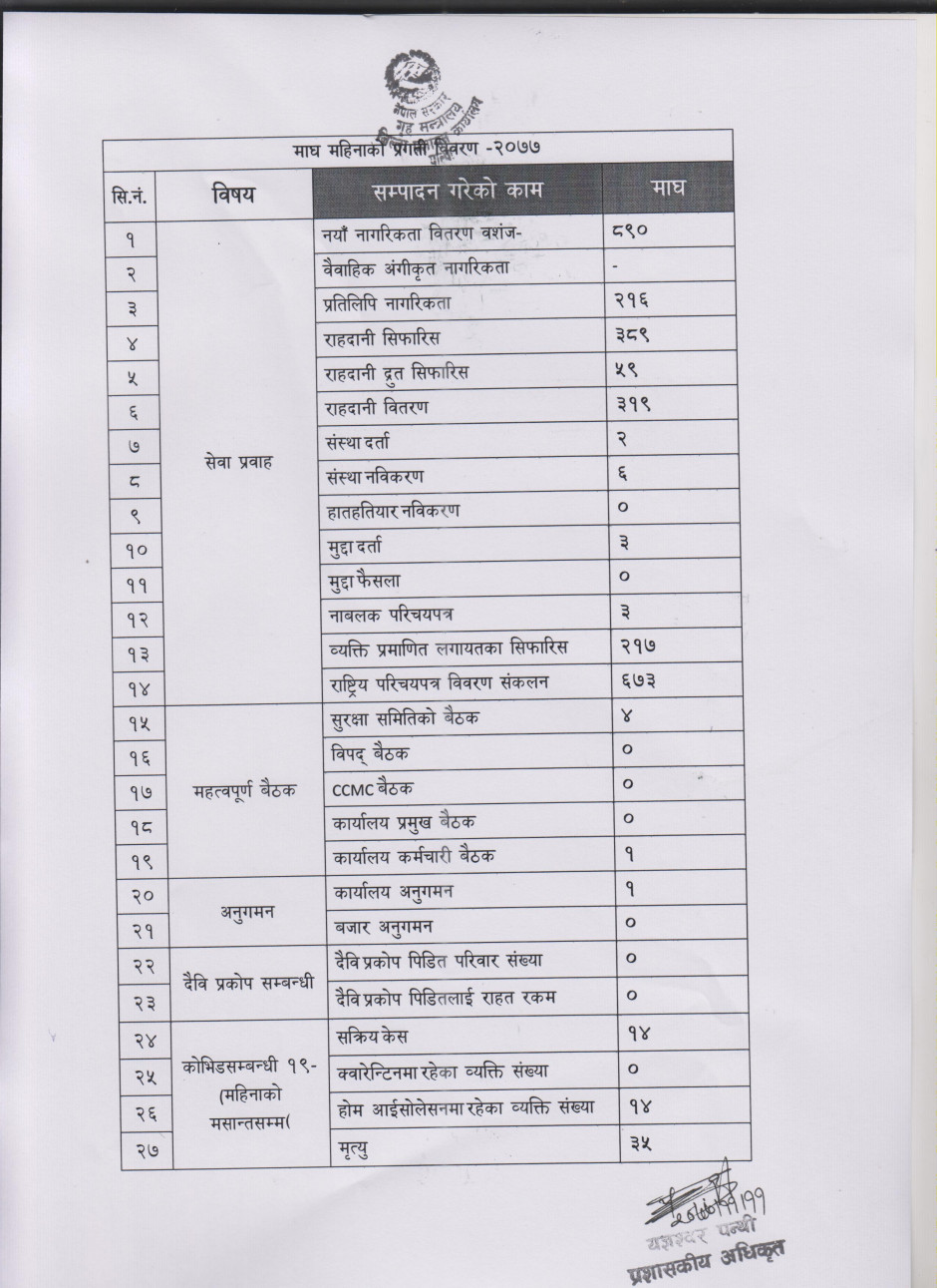 माघ महिनाको प्रगति विवरण