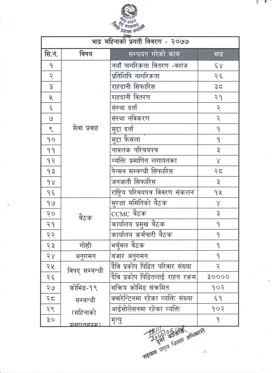 मासिक प्रगति विवरण - २०७७ भाद्र