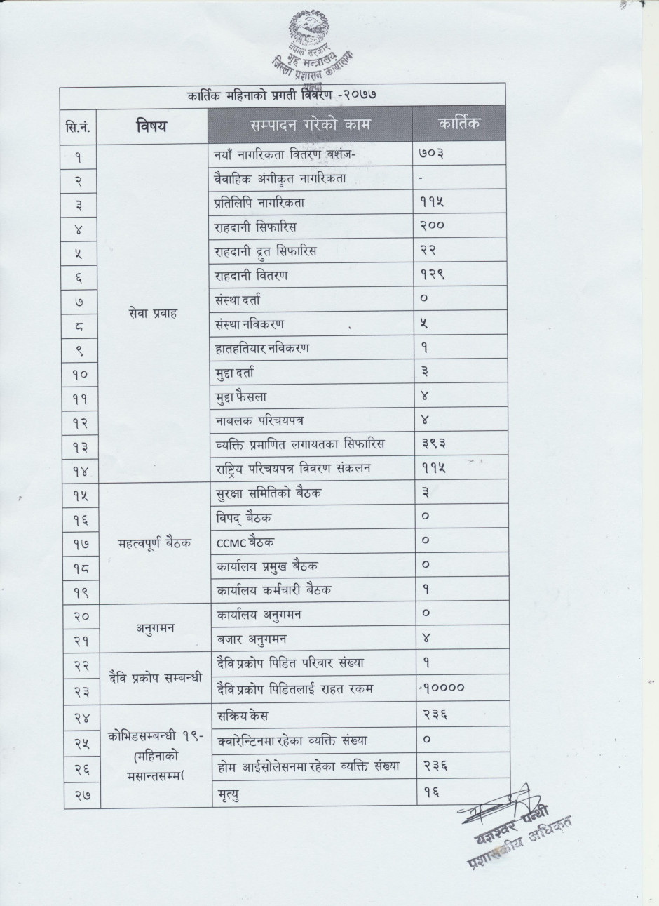मासिक प्रगति विवरण -२०७७ कार्तिक