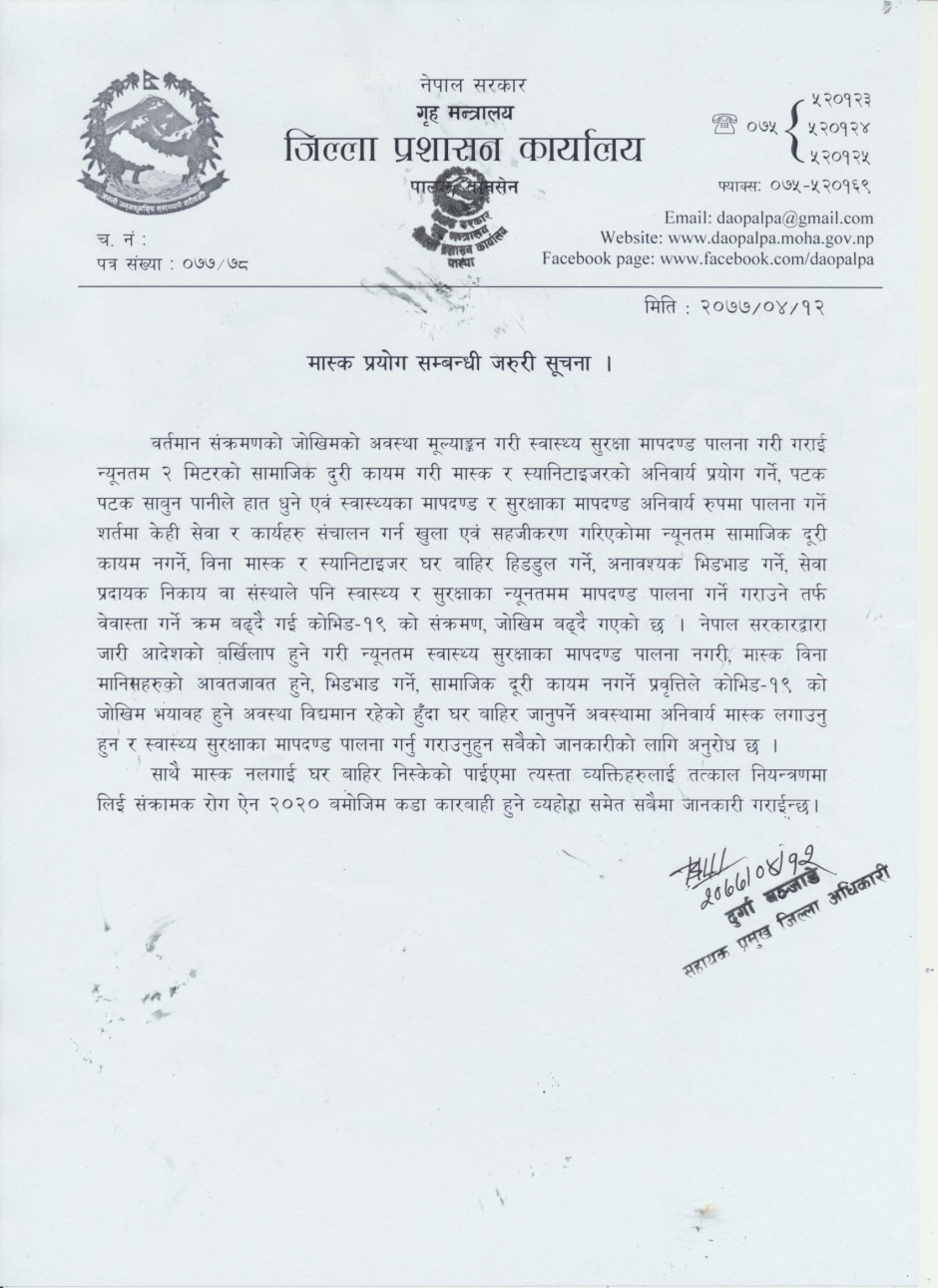 जिल्ला प्रशासन कार्यालय पाल्पाको अनुरोध ।