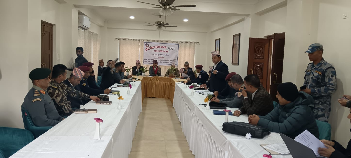 मिति २०८२ पुष ४ गते जिल्ला विपद् व्यवस्थापन समितिका अध्यक्ष एवं प्रमुख जिल्ला अधिकारीको अध्यक्षतामा बसेको बैठकको तस्बिरहरु