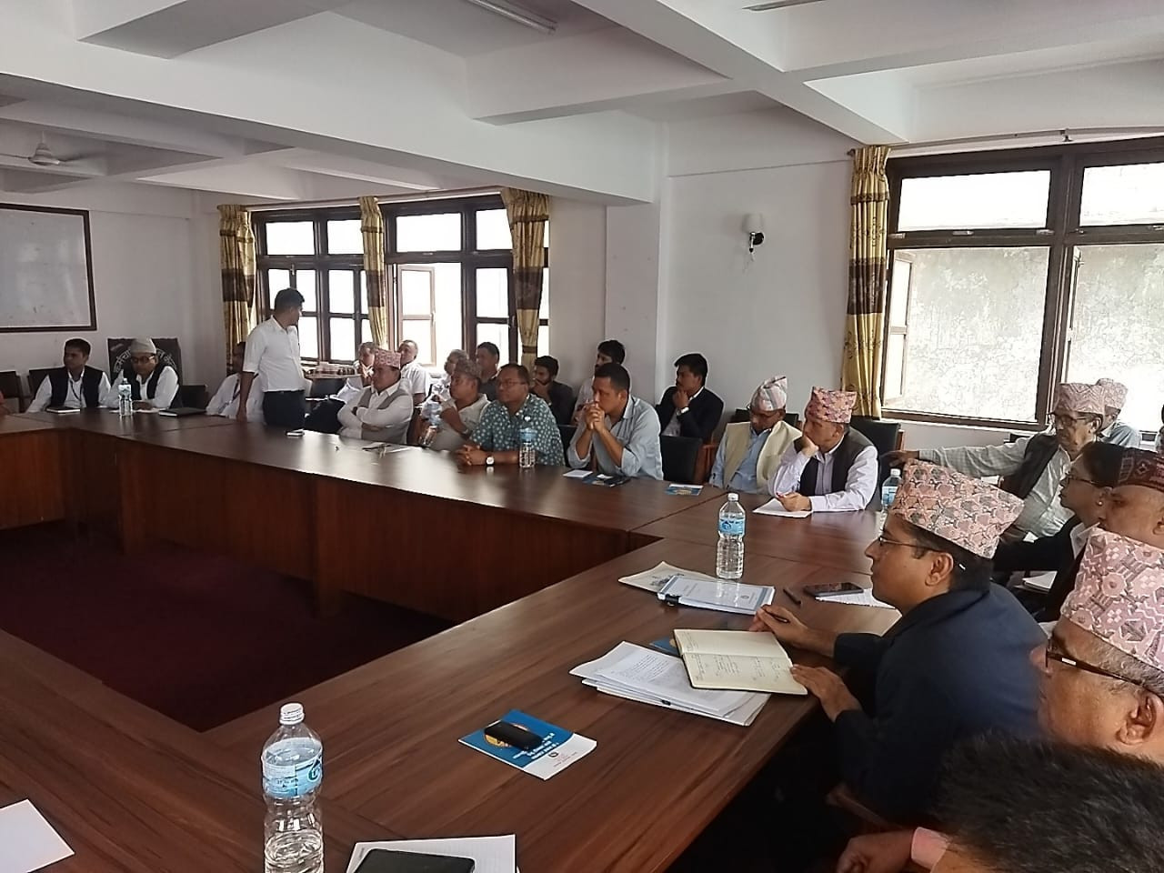 मिति २०८२ जेष्ठ २० गते जिल्ला विपद् व्यवस्थापन समितिका अध्यक्ष एवं प्रमुख जिल्ला अधिकारीको अध्यक्षतामा बसेको बैठकको क्रममा लिइएको तस्विरहरु