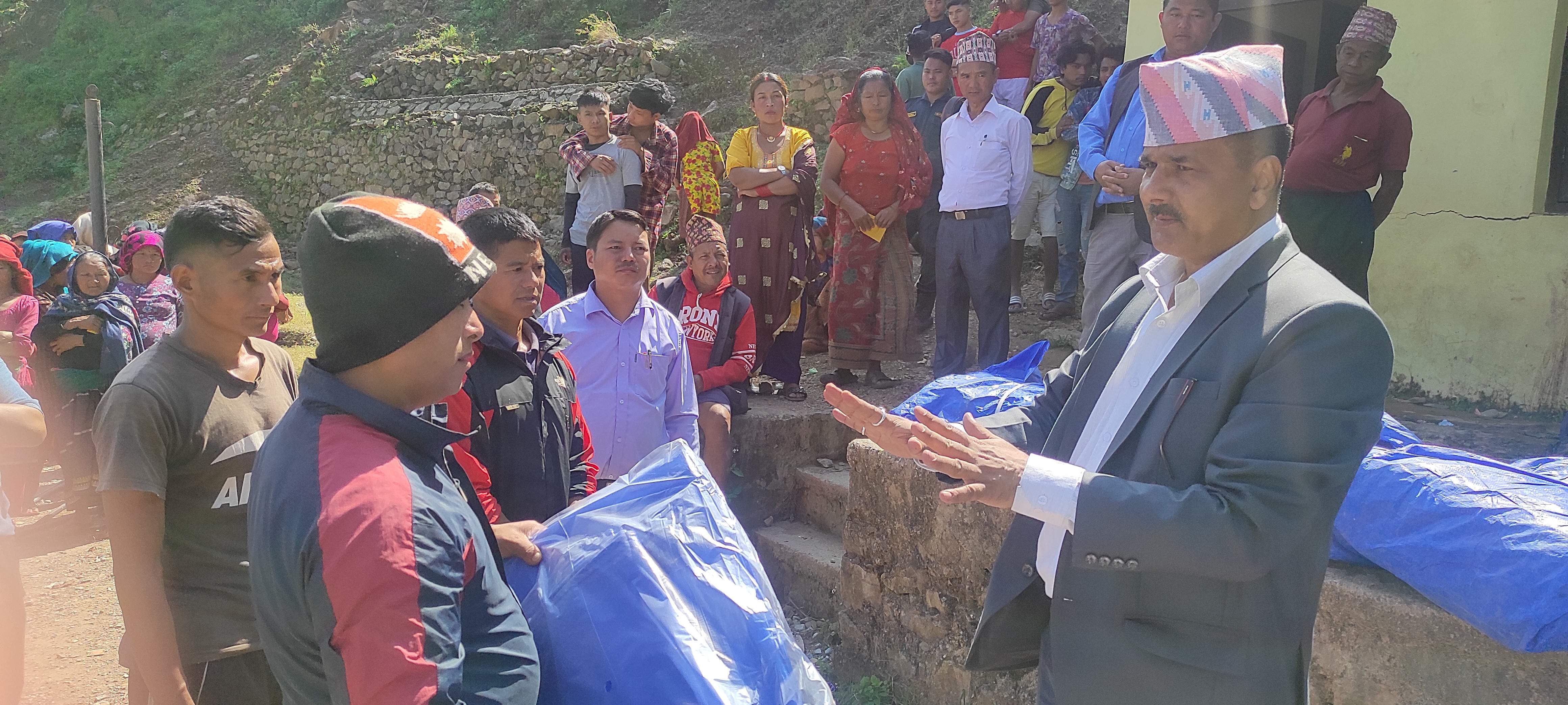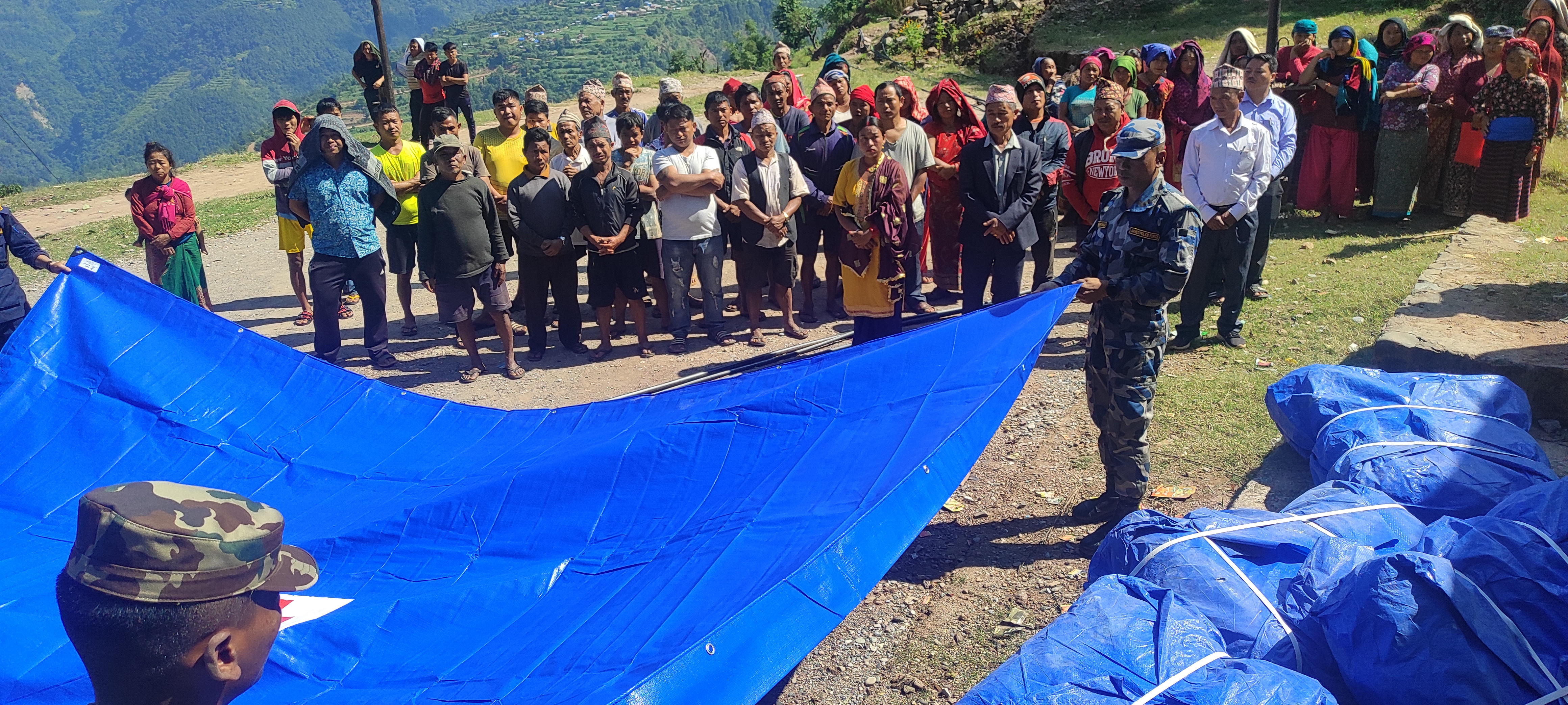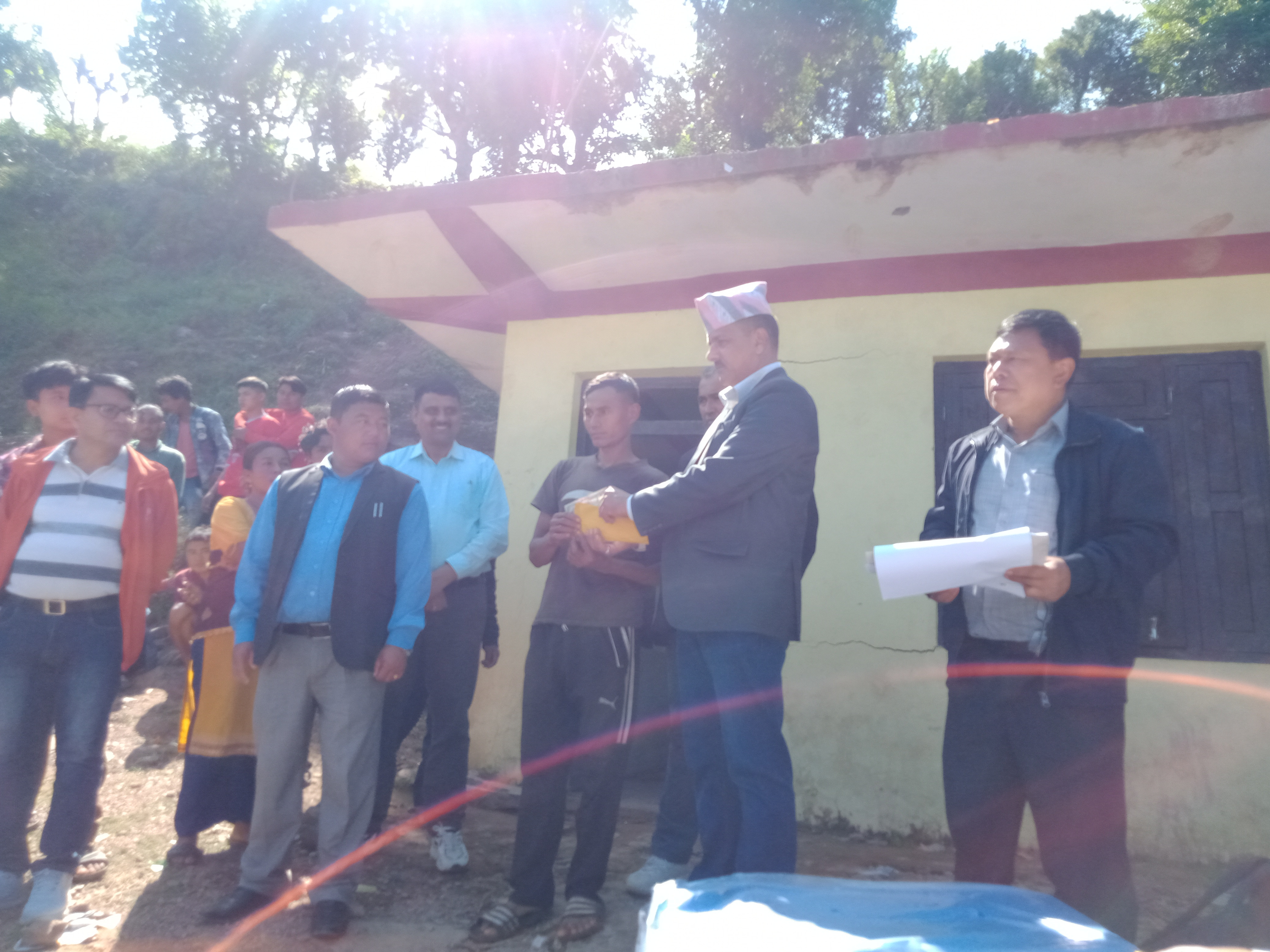 मिति २०७९-७-१ गते निस्दी गा.पा.वडा नं ३ स्थित केमरुङ बस्तीमा पहिरोका कारणले क्षति पुगेका परिवारलाई प्रमुख जिल्ला अधिकारीवाट राहत वितरण गरिएको