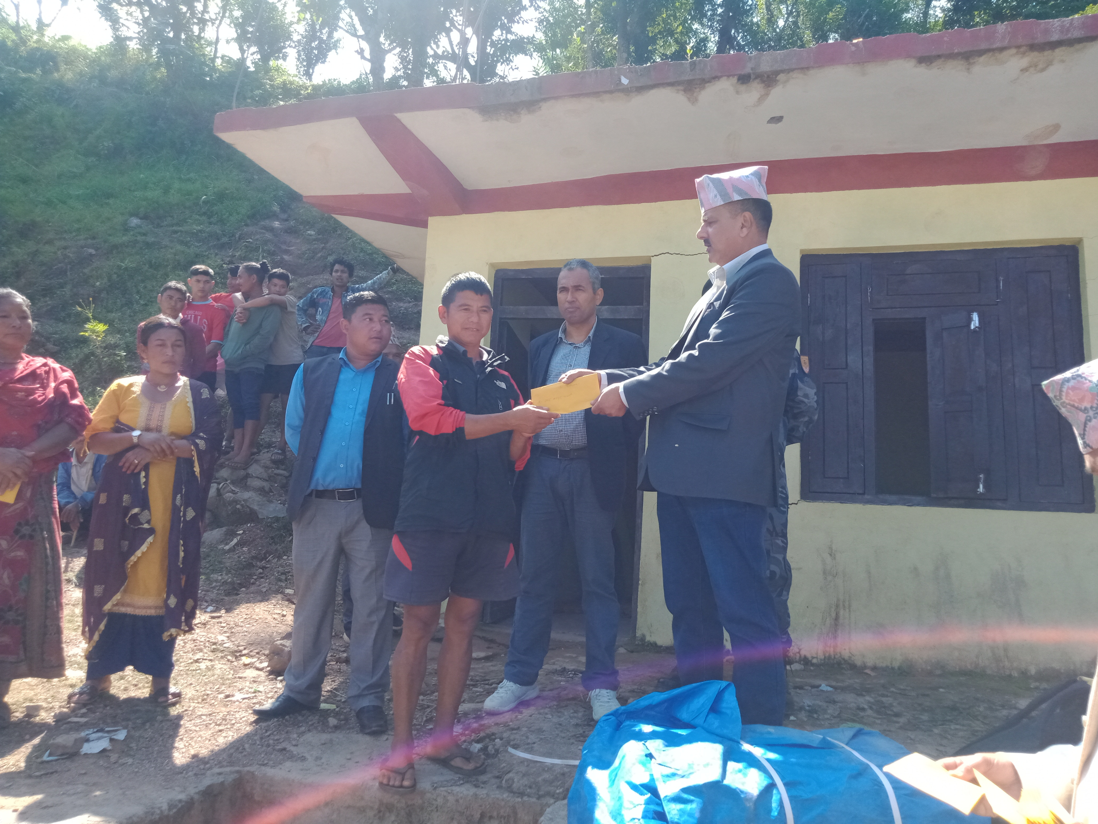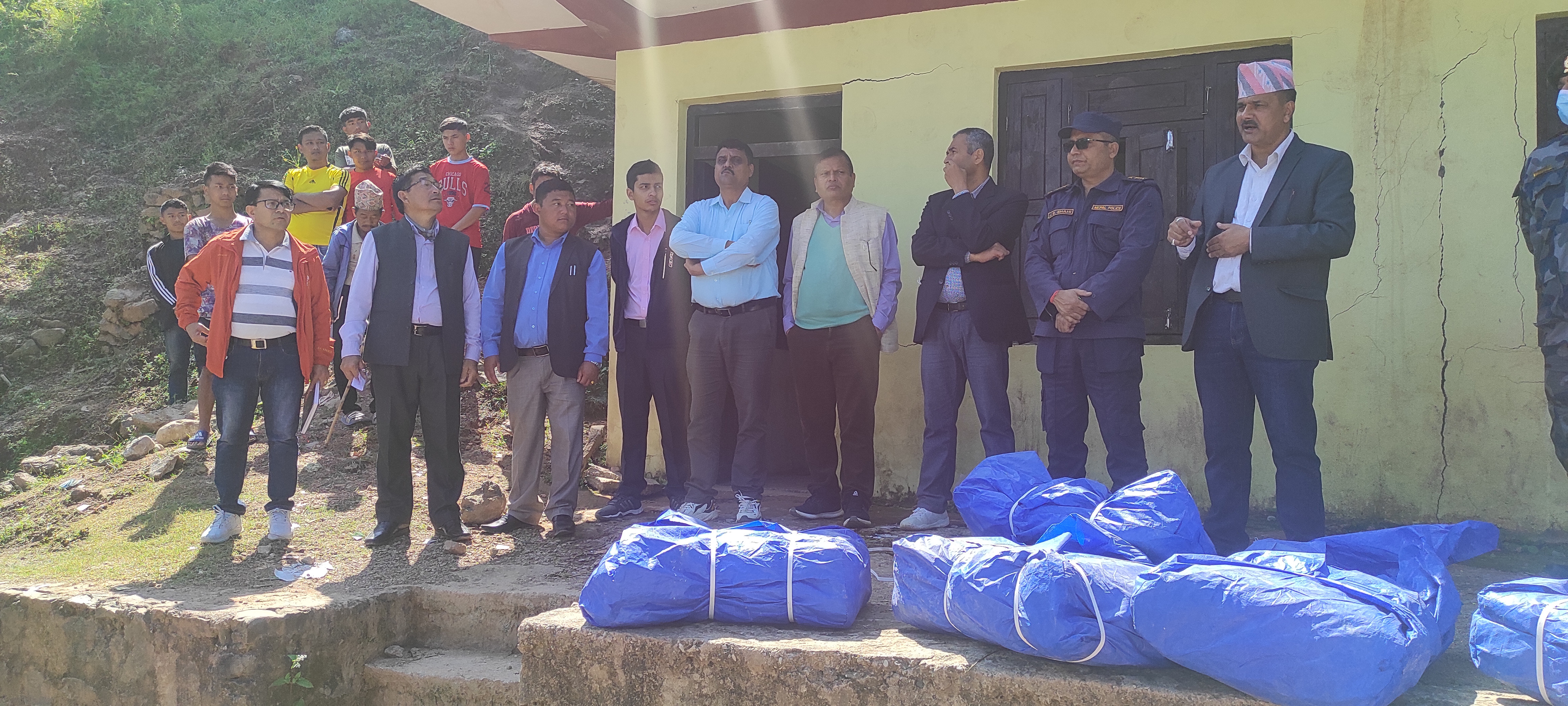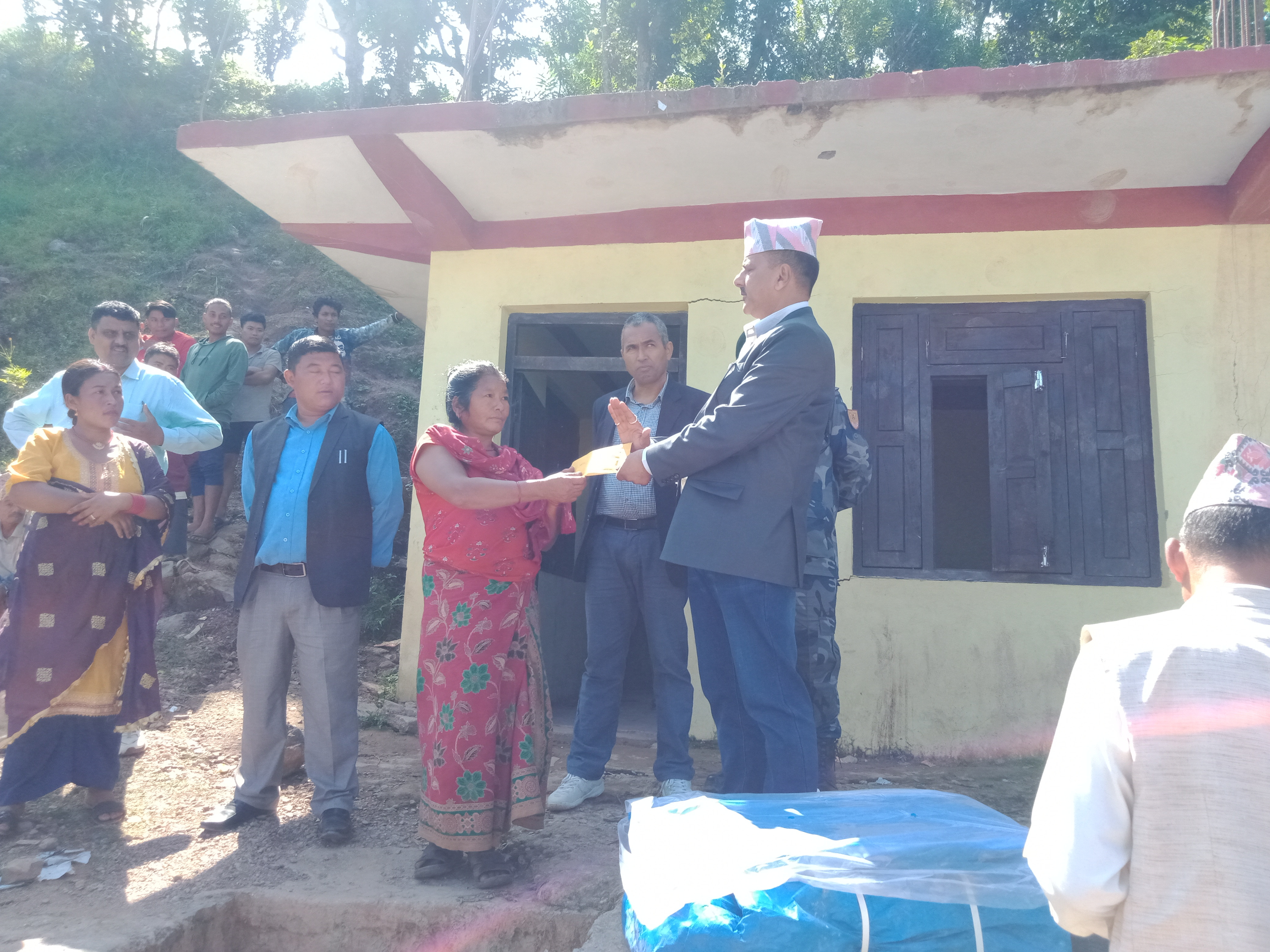 मिति २०७९-७-१ गते निस्दी गा.पा.वडा नं ३ स्थित केमरुङ बस्तीमा पहिरोका कारणले क्षति पुगेका परिवारलाई प्रमुख जिल्ला अधिकारीवाट राहत वितरण गरिएको