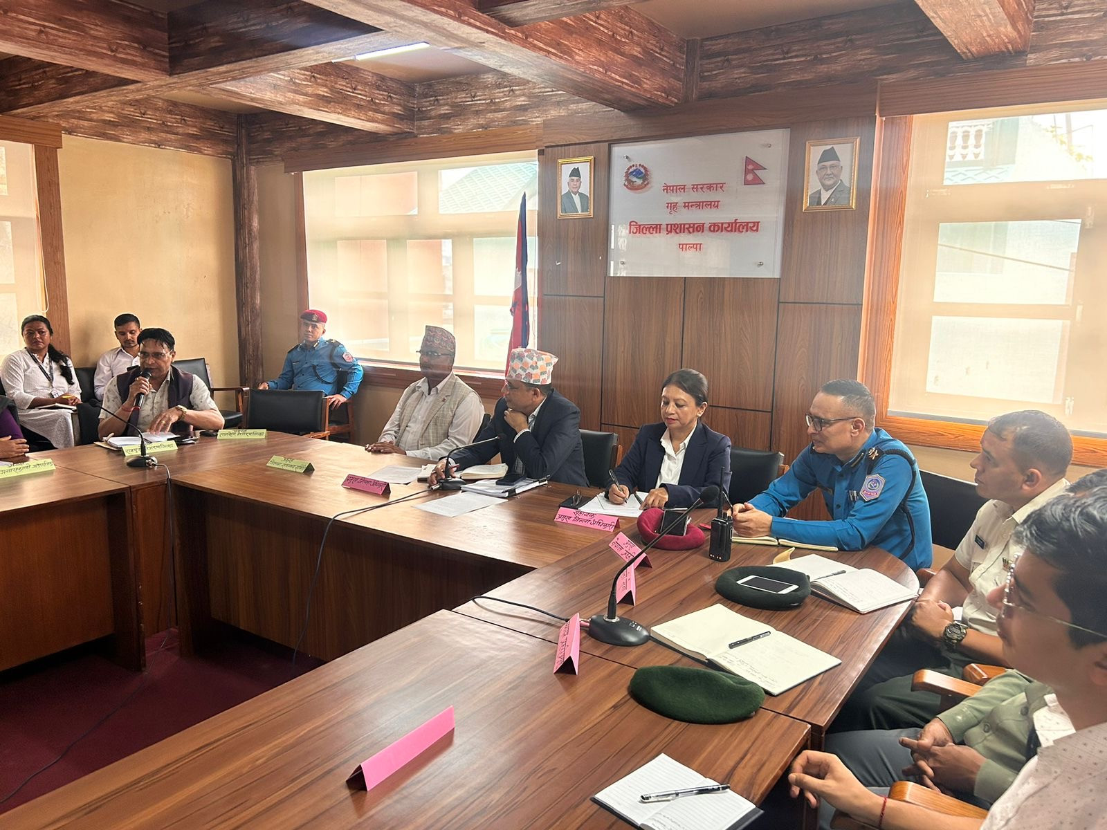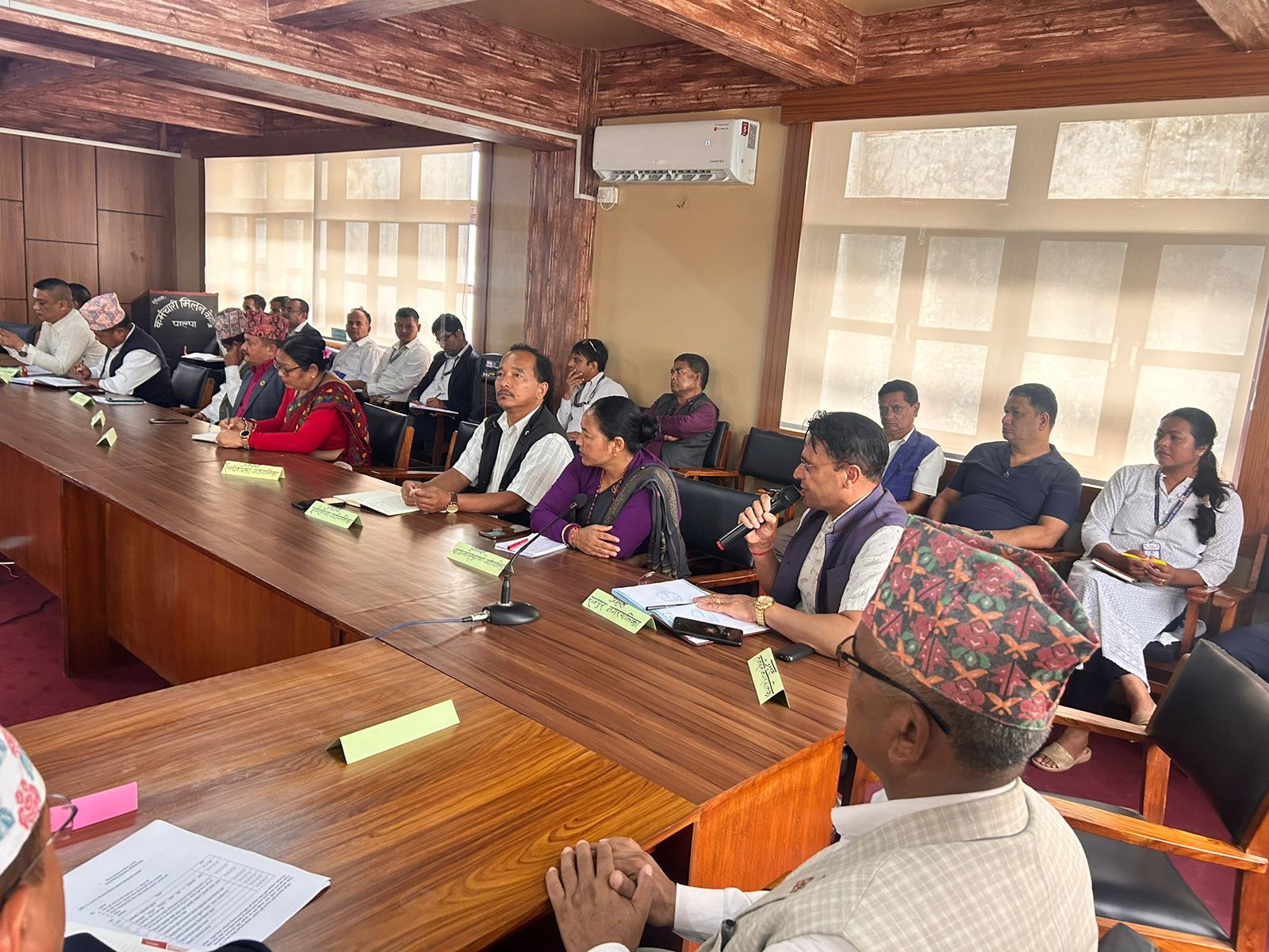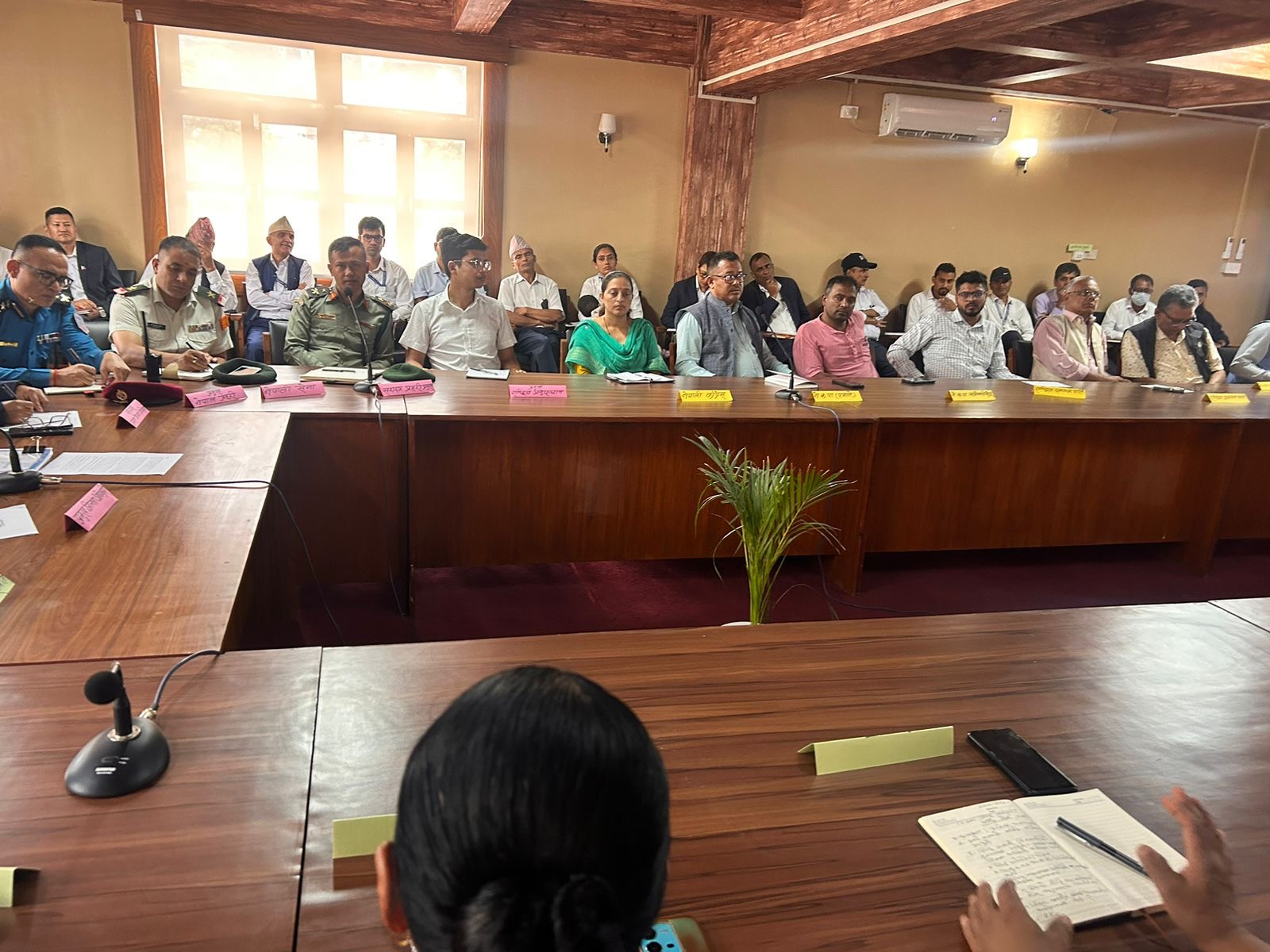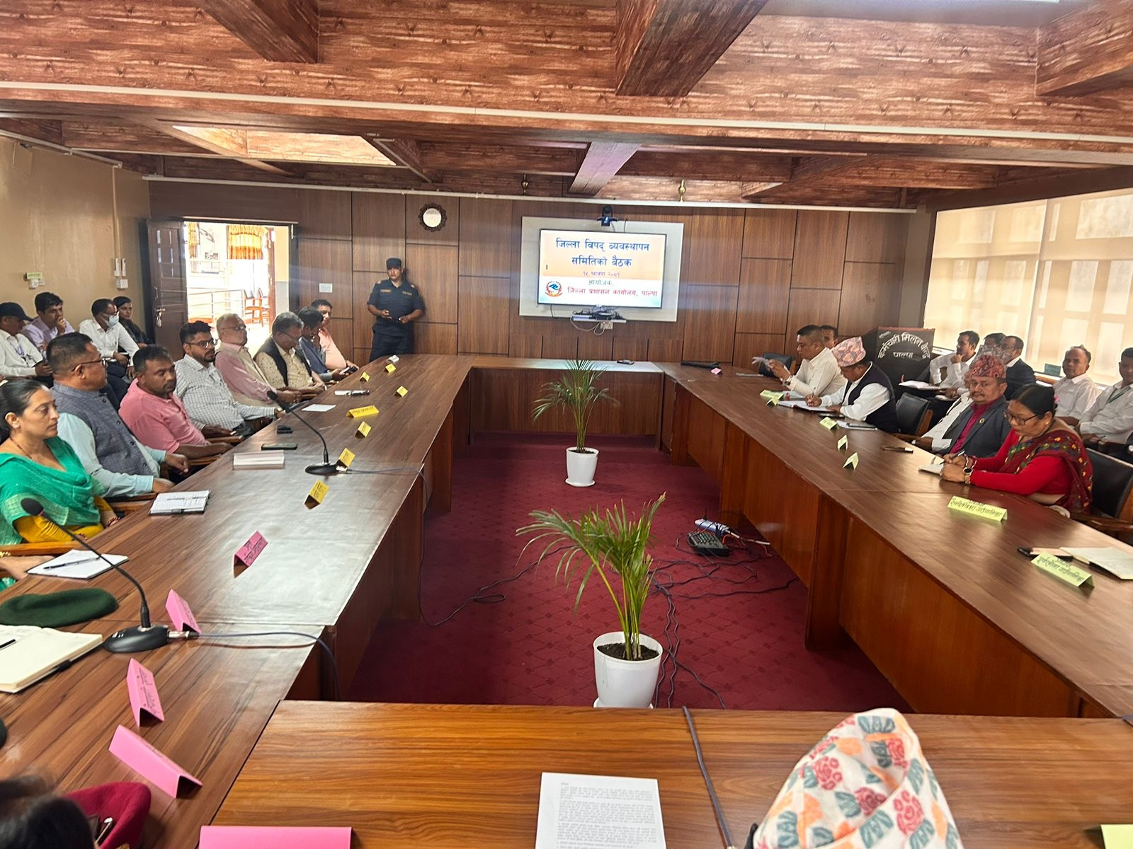 मिति २०८१।४।१५ गते प्रमुख जिल्ला अधिकारीको अध्यक्षतामा बसेको जिल्ला विपद् व्यवस्थापन समितिको बैठकको तस्विरहरु