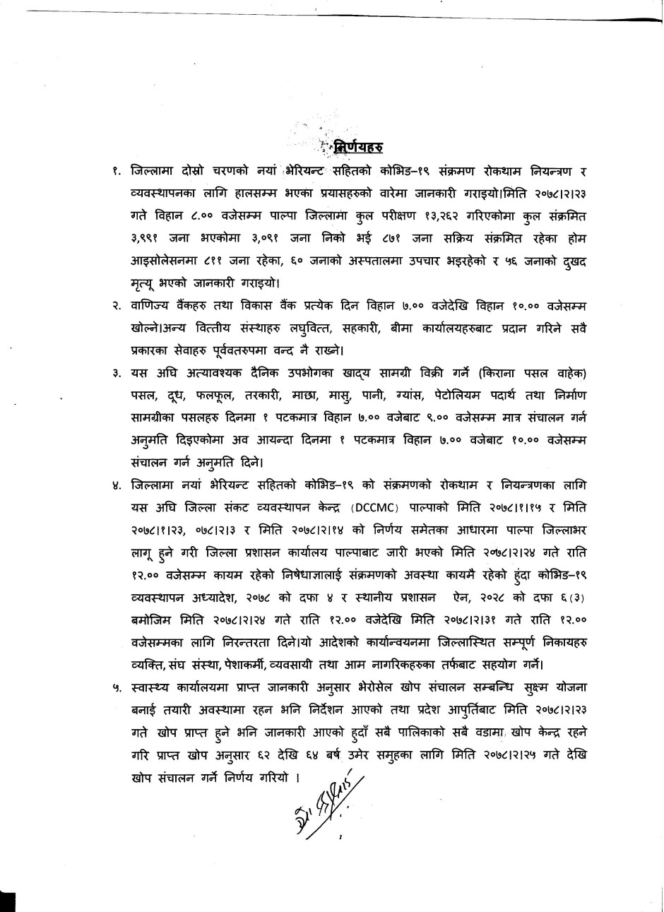 मिति २०७८/२/२३ मा बसेकाे DCMC बैठककाे निर्णयहरु ।