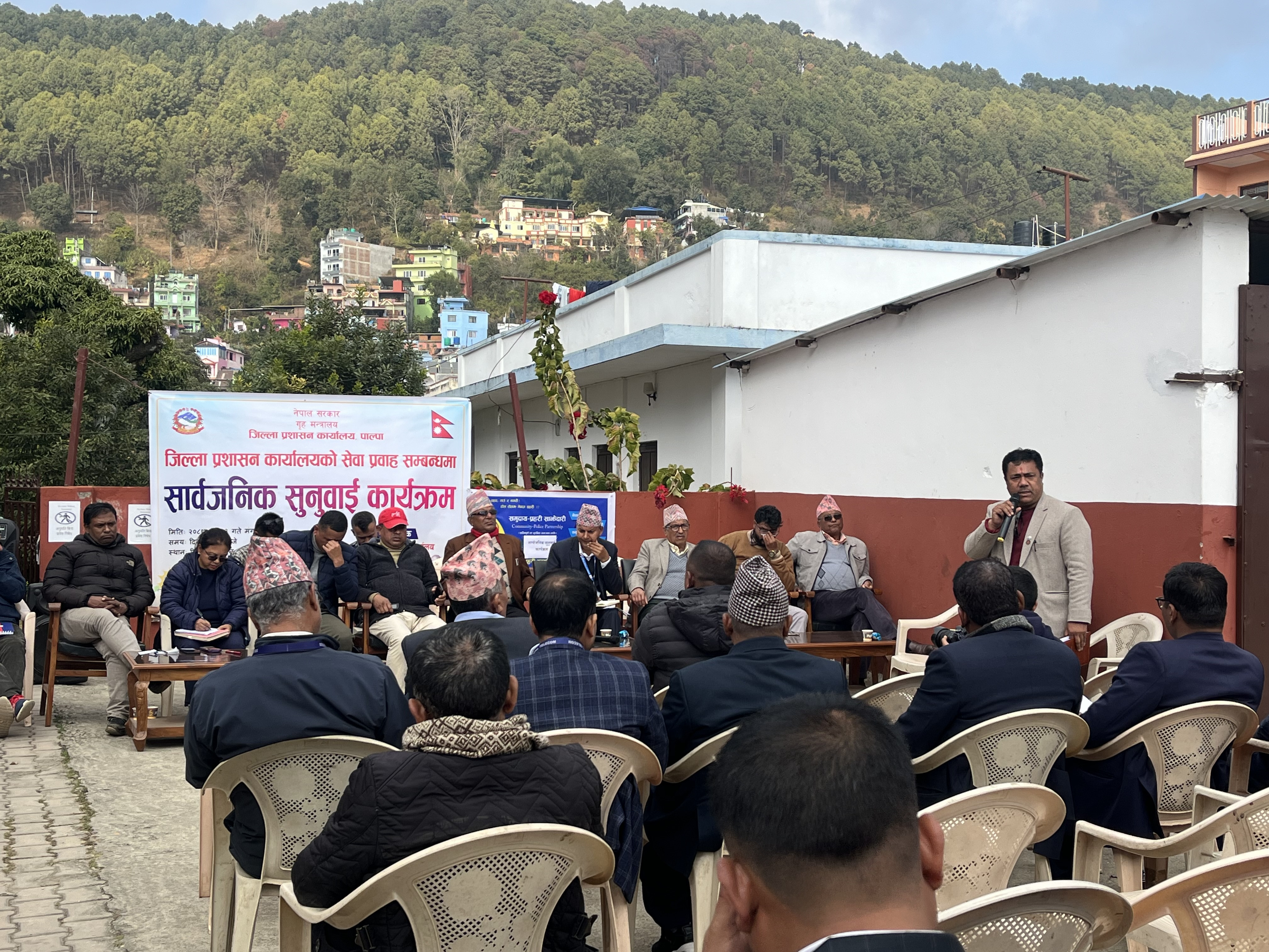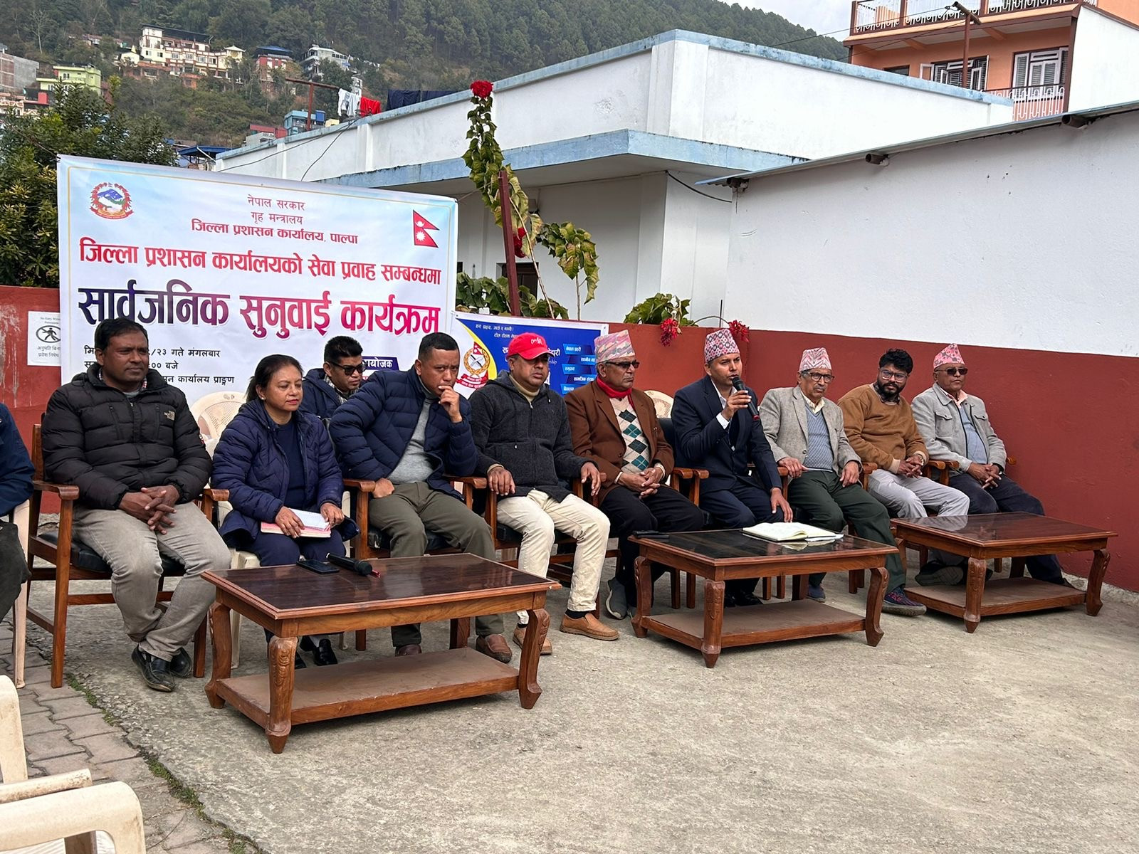 मिति २०८१ पुष २३ गते कार्यालयको सेवा प्रवाह सम्बन्धमा सार्वजनिक सुनुवाई कार्यक्रम प्राङ्गणमा भएको कार्यक्रमको तस्विरहरु
