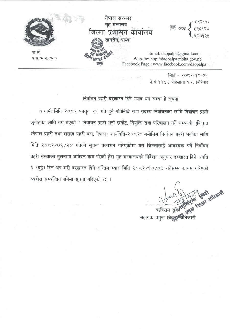 © सर्वाधिकार सुरक्षित जिल्ला प्रशासन कार्यालय, पाल्पा .