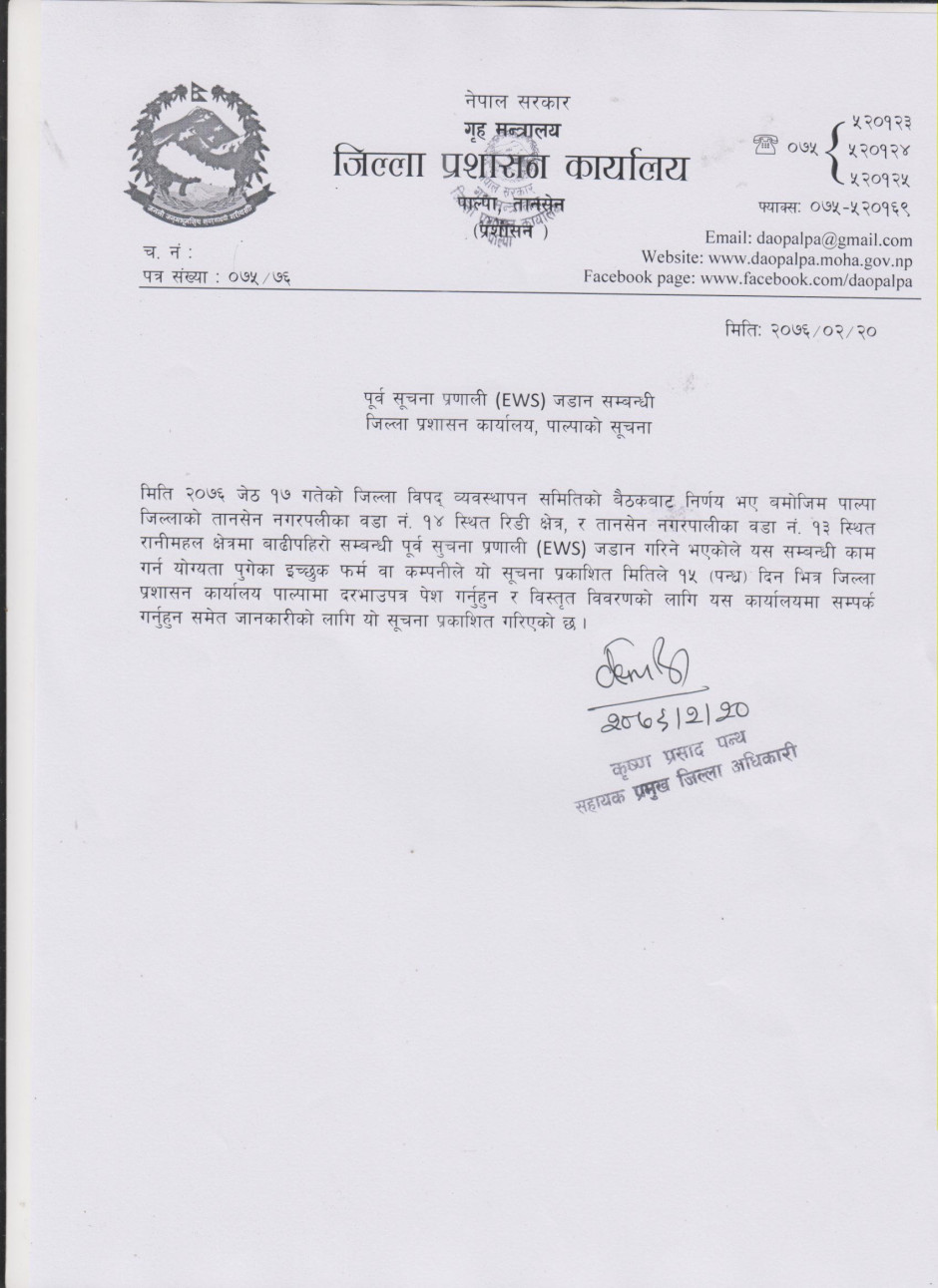 © सर्वाधिकार सुरक्षित जिल्ला प्रशासन कार्यालय, पाल्पा .
