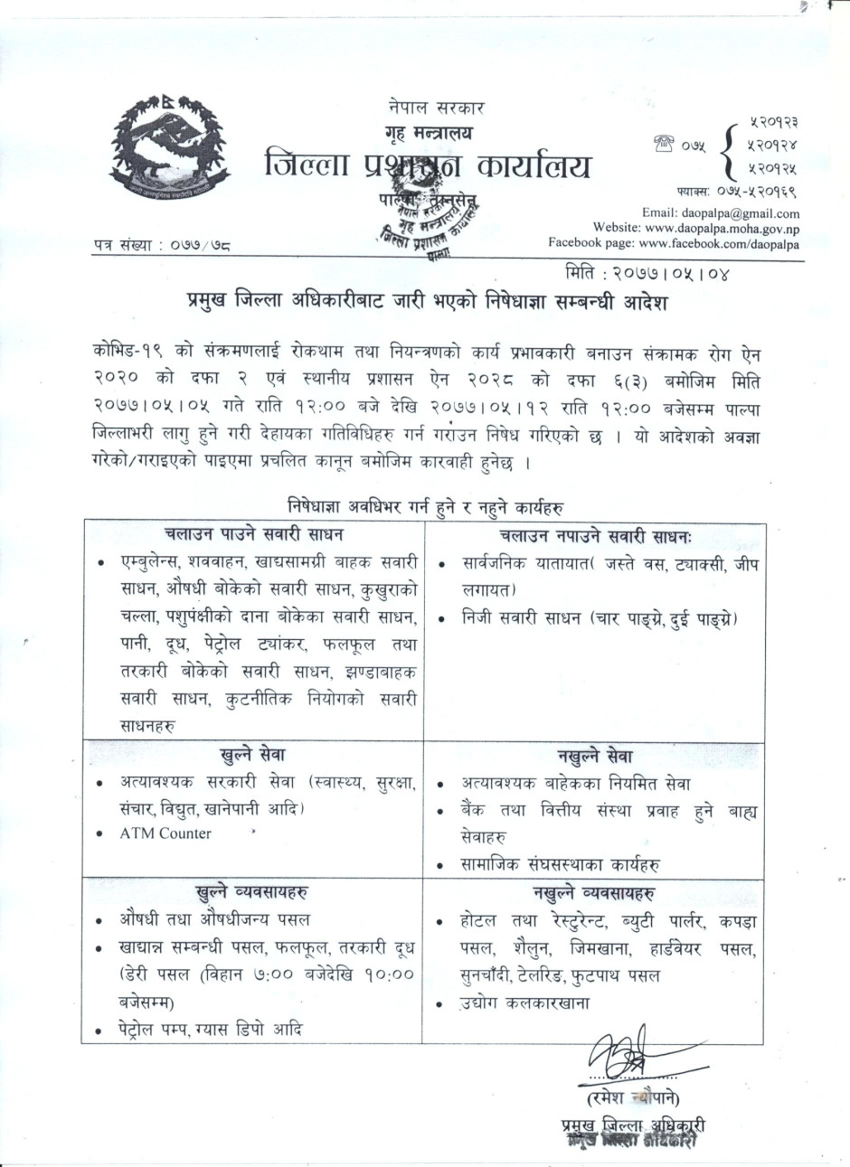 जिल्ला प्रशासन कार्यालय पाल्पाको अनुरोध ।