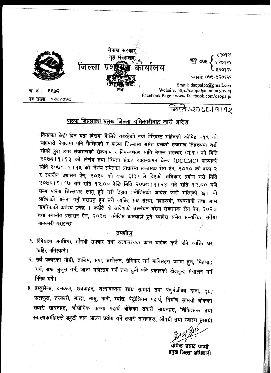प्रमुख जिल्ला अधिकारीवाट जारी आदेश । २०७८/१/१५