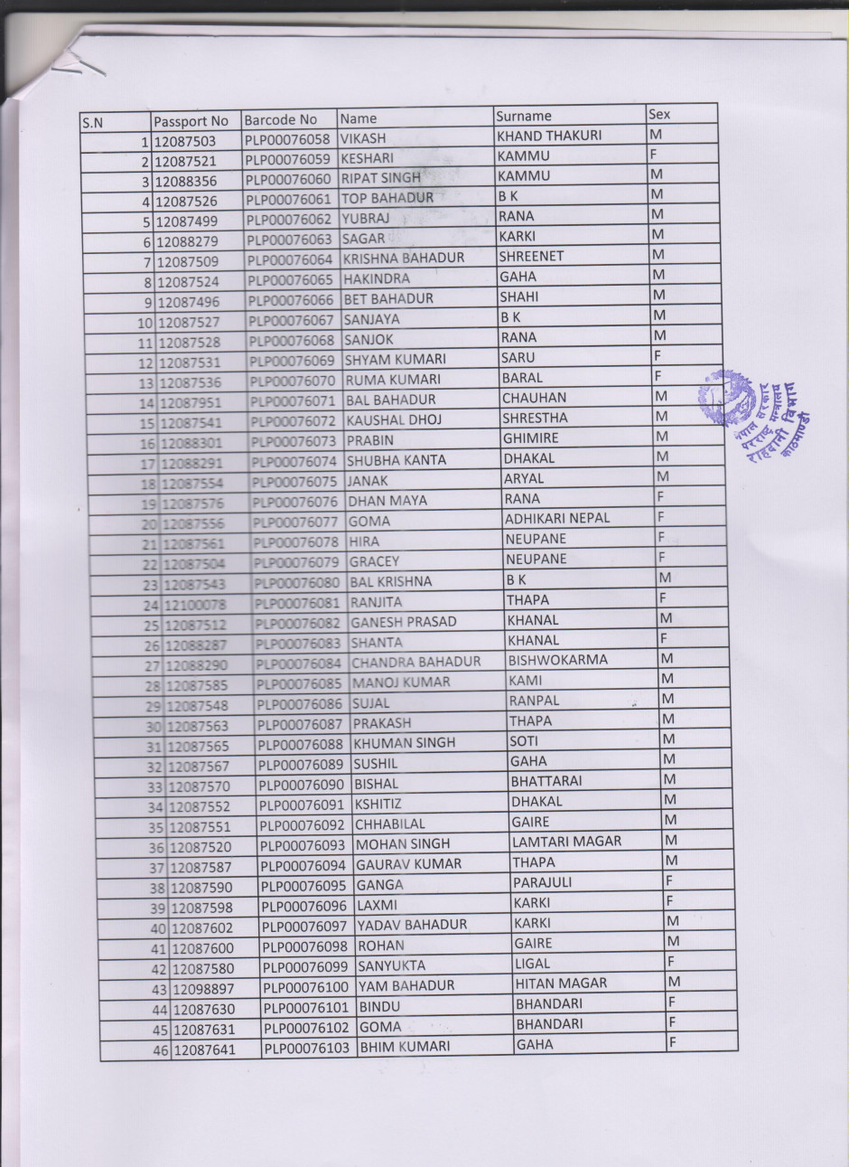 जिल्ला प्रशासन कार्यालय, पाल्पामा मिति २०७७ पुस ७ देखि २०७७ माघ ४ गतेसम्म राहदानीको लागि आवेदन बुझाएका नागरिकहरुको Passport तयार भएको छ । राहदानी लिन आउँदा सक्कल नागरिकताको प्रमाणपत्र र रसिद लिई अहिलेको कार्यालय समय १०.०० देखि ५.०० बजे भित्रमा स्वयं व्यक्ति उपस्थित भई राहदानी लिनुहुन अनुरोध छ ।