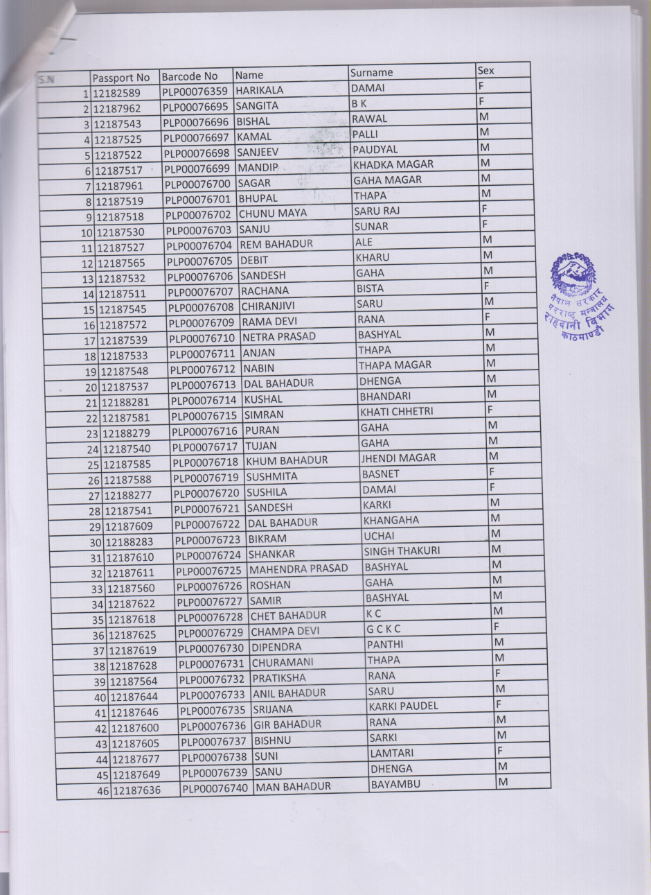 जिल्ला प्रशासन कार्यालय, पाल्पामा मिति २०७७ फागुन २ देखि २०७७ चैत्र ४ गतेसम्म राहदानीको लागि आवेदन बुझाएका नागरिकहरुको Passport तयार भएको छ । राहदानी लिन आउँदा सक्कल नागरिकताको प्रमाणपत्र र रसिद लिई अहिलेको कार्यालय समय १०.०० देखि ५.०० बजे भित्रमा स्वयं व्यक्ति उपस्थित भई राहदानी लिनुहुन अनुरोध छ ।