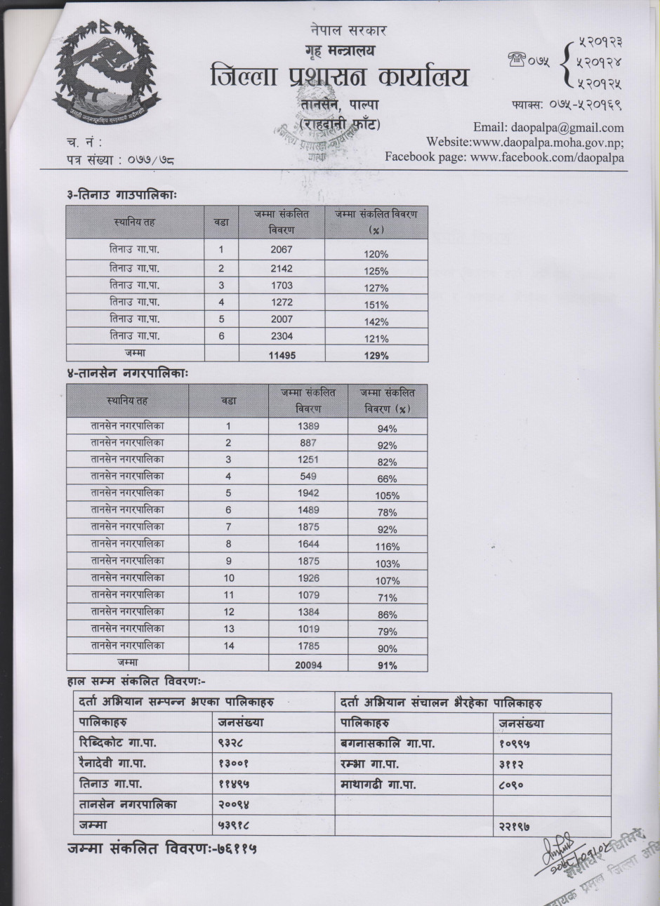 जिल्ला दररेट, २०७८/७९ - पाल्पा