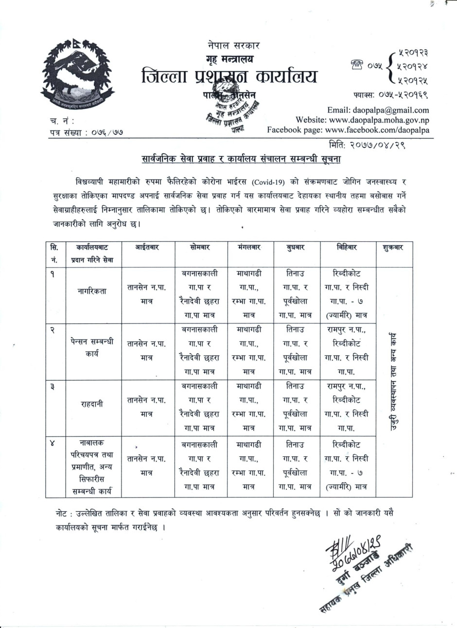 जिल्ला प्रशासन कार्यालय पाल्पाको अनुरोध ।