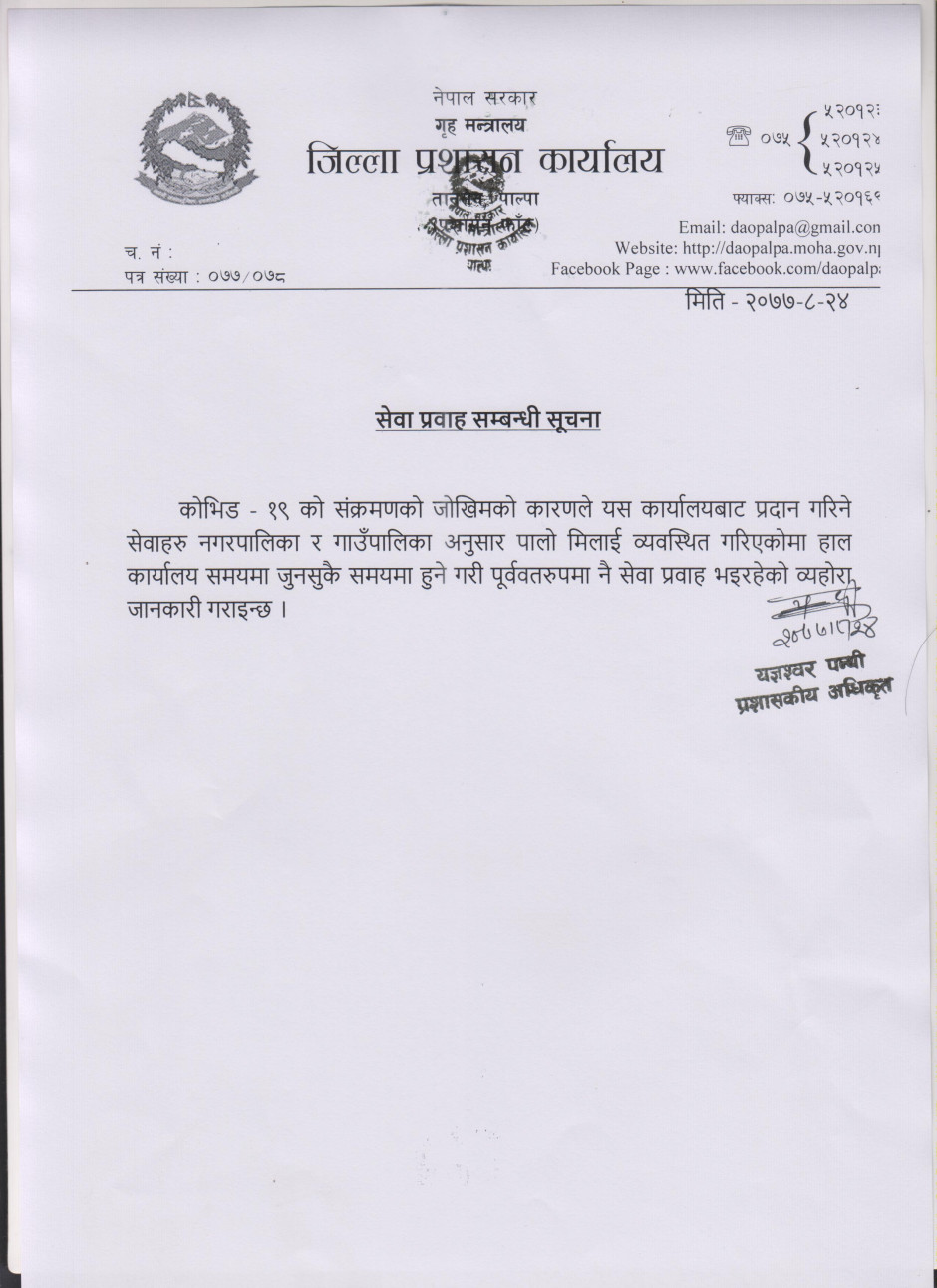 जिल्ला प्रशासन कार्यालय पाल्पाको अनुरोध ।
