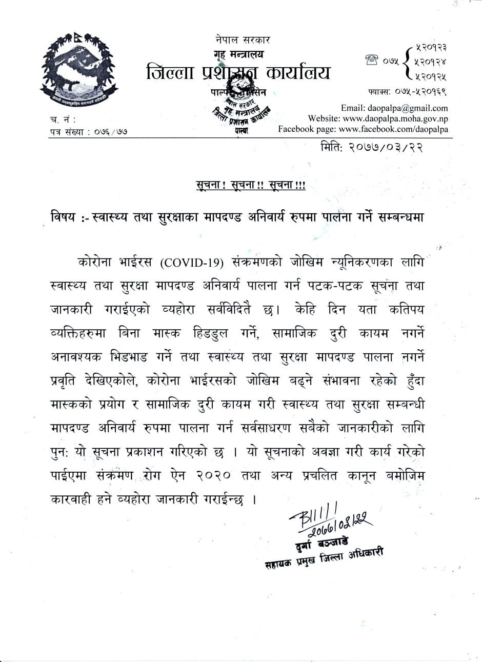 जिल्ला प्रशासन कार्यालय पाल्पाको अनुरोध ।