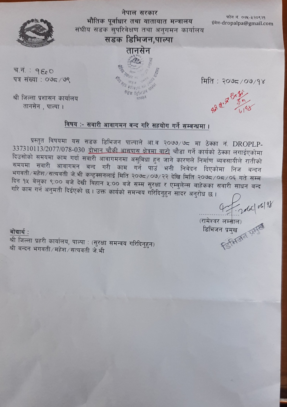 जिल्ला प्रशासन कार्यालय पाल्पाको अनुरोध ।