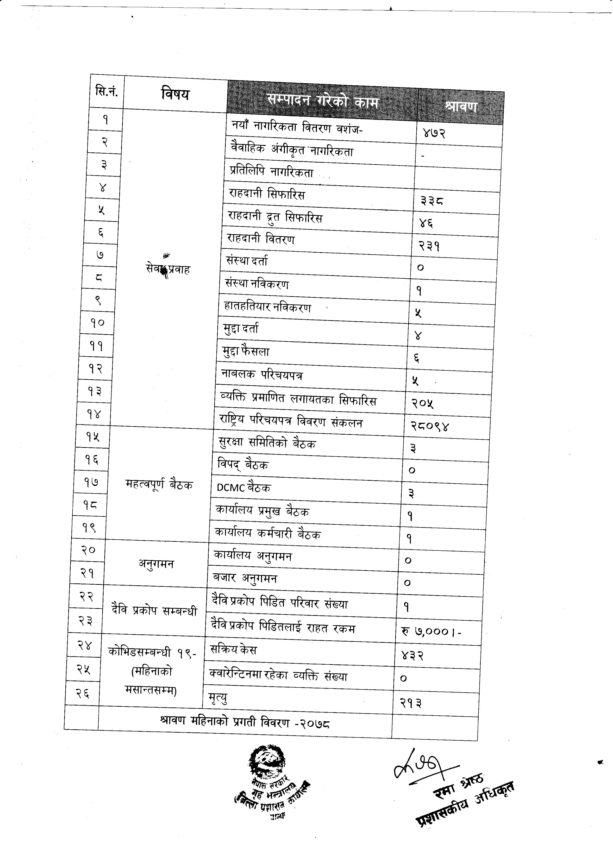२०७८ श्रावण महिनाको मासिक प्रगति विवरण ।