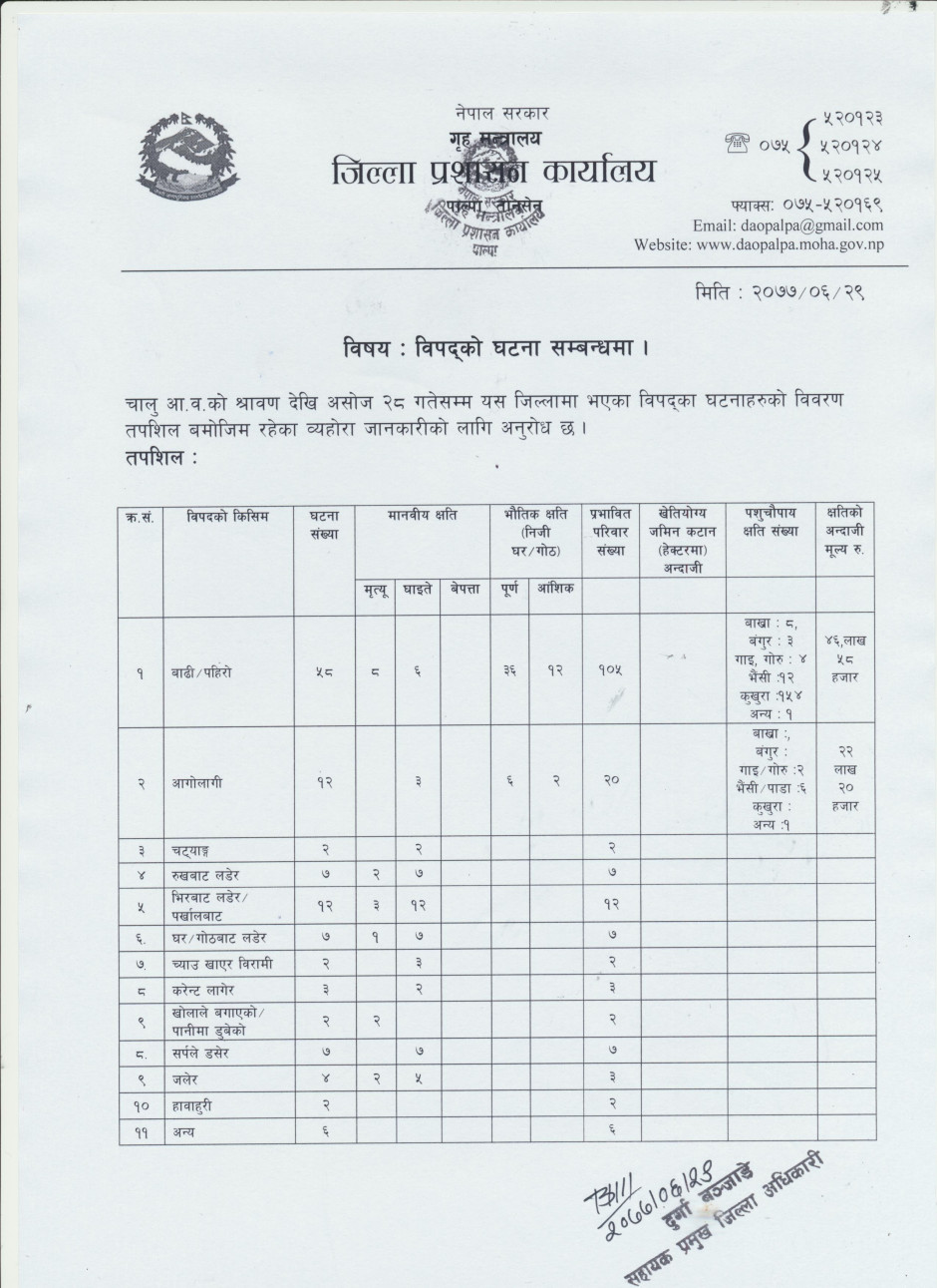 विपद्का घटना विवरण २०७७/७८ असोज मसान्त